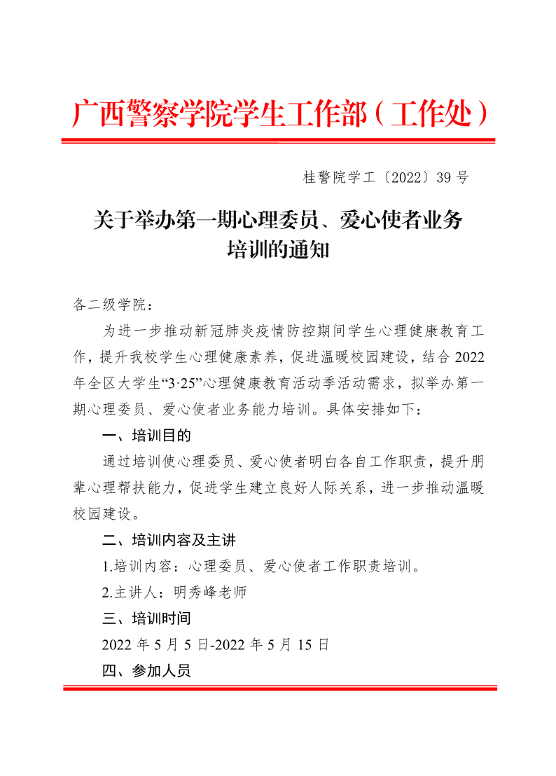 关于举办第一期心理委员、爱心使者业务能力培训的通知