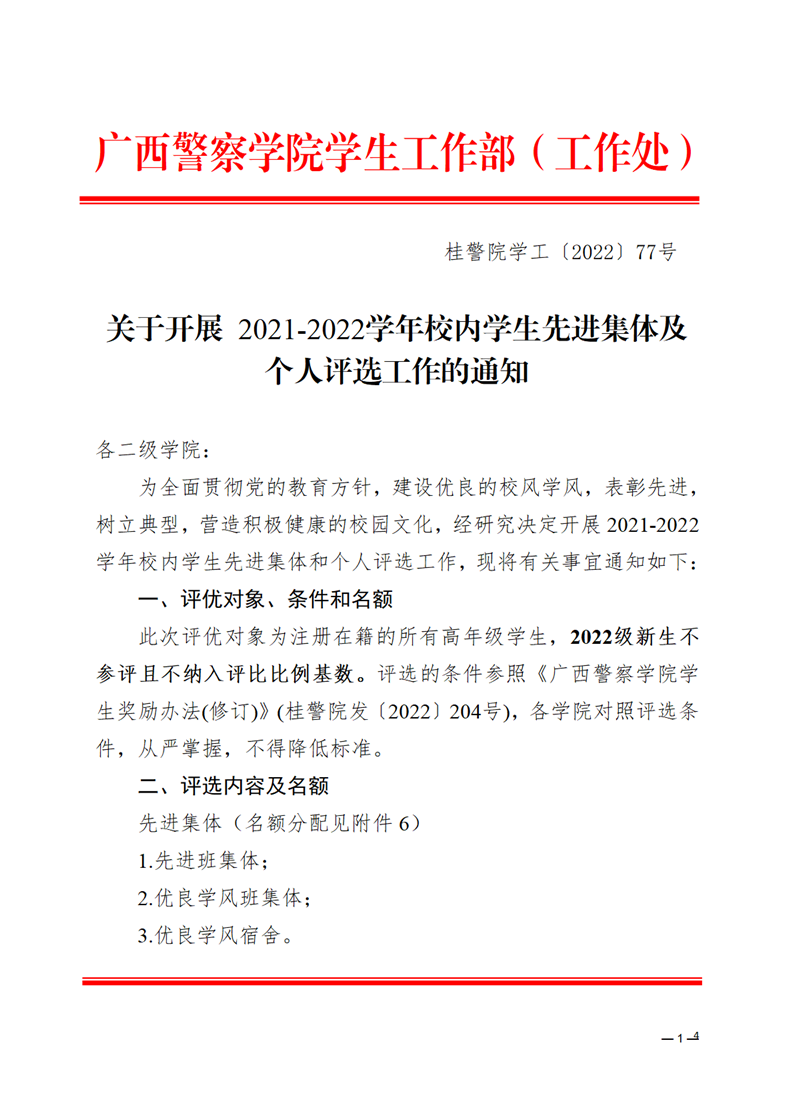 关于开展2021-2022学年校内学生先进集体及个人评选工作的通知