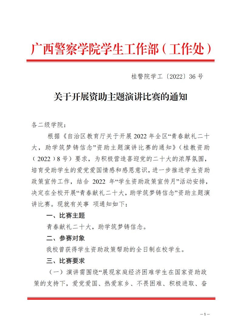 关于开展资助主题演讲比赛的通知