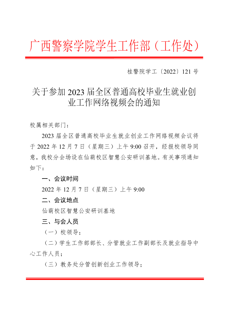 关于参加2023届全区普通高校毕业生就业创业工作网络视频会的通知