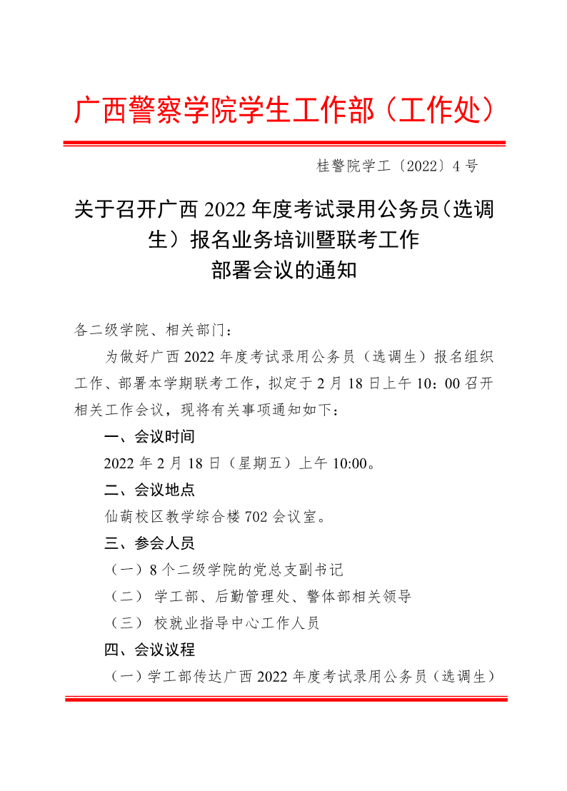 关于召开广西2022年度考试录用公务员(选调生)报名业务培训暨联考工作部署会议的通知