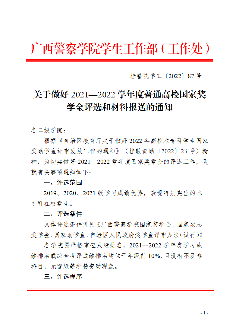 关于做好2021—2022学年度普通高校国家奖学金评选和材料报送的通知