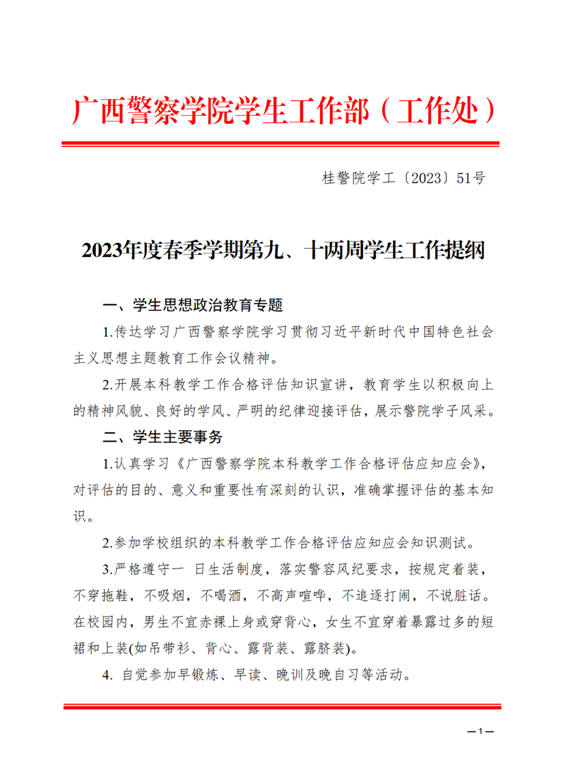 2023年度春季学期第九、十两周学生工作提纲
