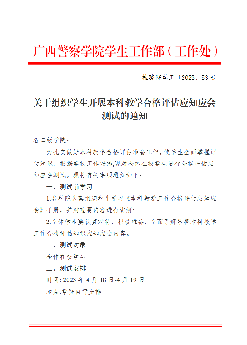 关于组织学生开展本科教学合格评估应知应会测试的通知