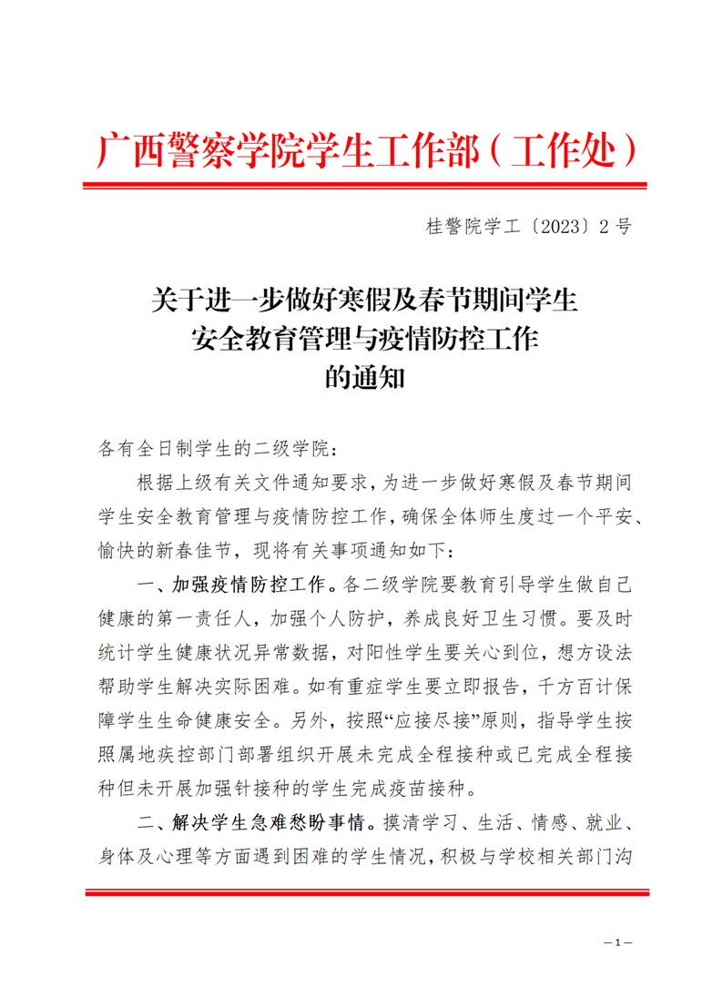 关于进一步做好寒假及春节期间学生安全教育管理与疫情防控工作的通知