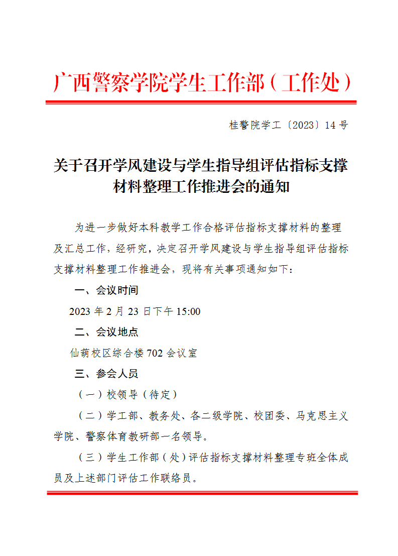 关于召开学风建设与学生指导组评估指标支撑材料整理工作推进会的通知
