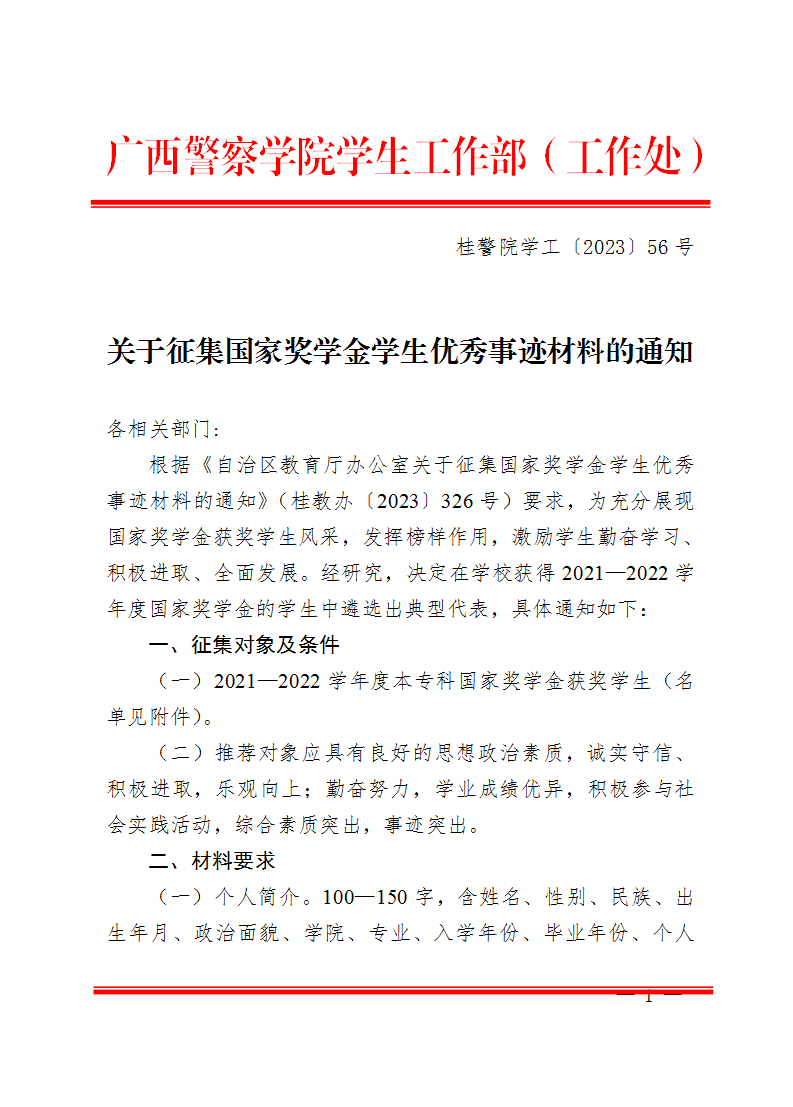 关于征集国家奖学金学生优秀事迹材料的通知