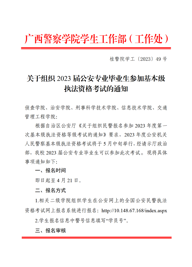 关于组织2023届公安专业毕业生参加基本级执法资格考试的通知