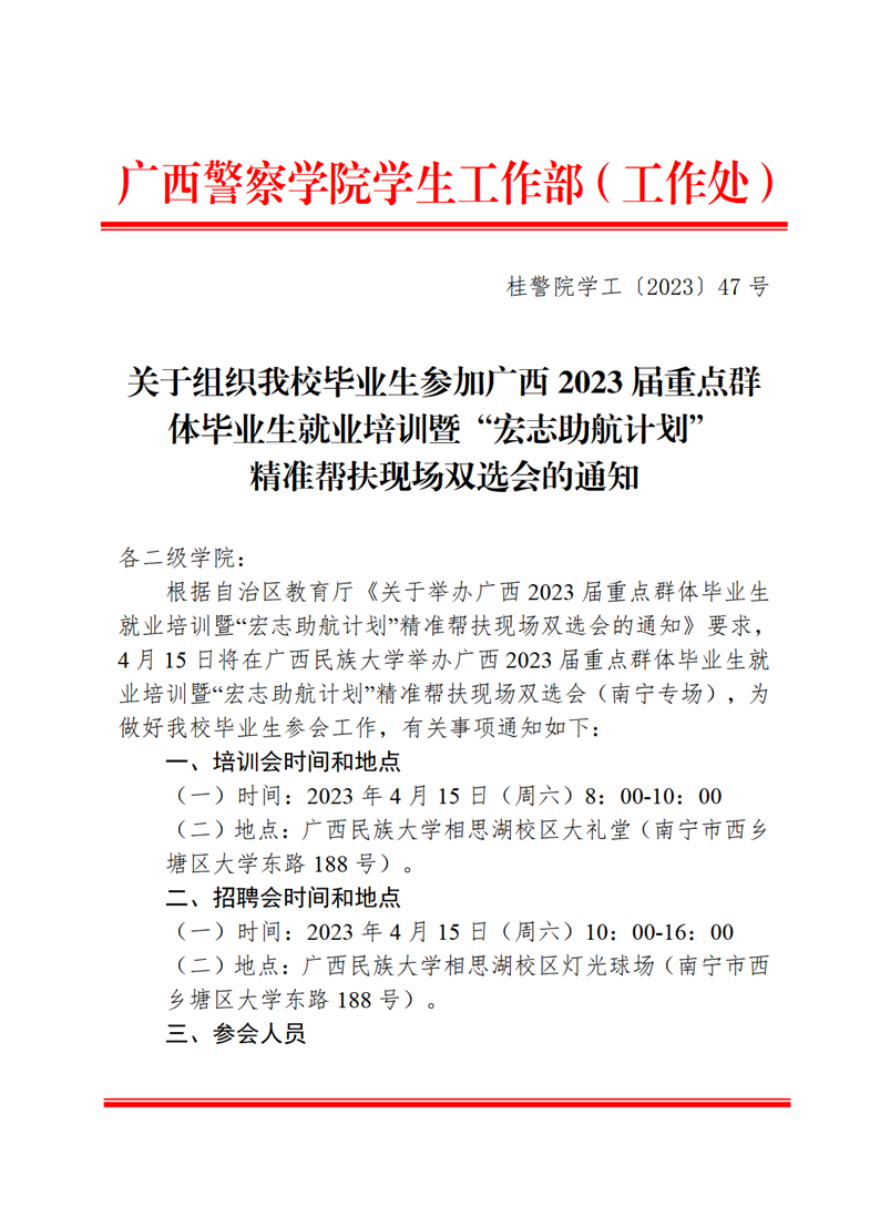 关于组织TapTap毕业生参加广西2023届重点群体毕业生就业培训暨“宏志助航计划”精准帮扶现场双选会的通知 47号 来源: 发布时间:2023-04-10 09:00:51 浏览次数: 次 【字体:小 大】 附件4:自治区教育厅办公室关于举办广西2023届重点群体毕业生就业培训暨“宏志助航计划”精准帮扶现场双选会的通知.pdf 分享到: 【打印正文】