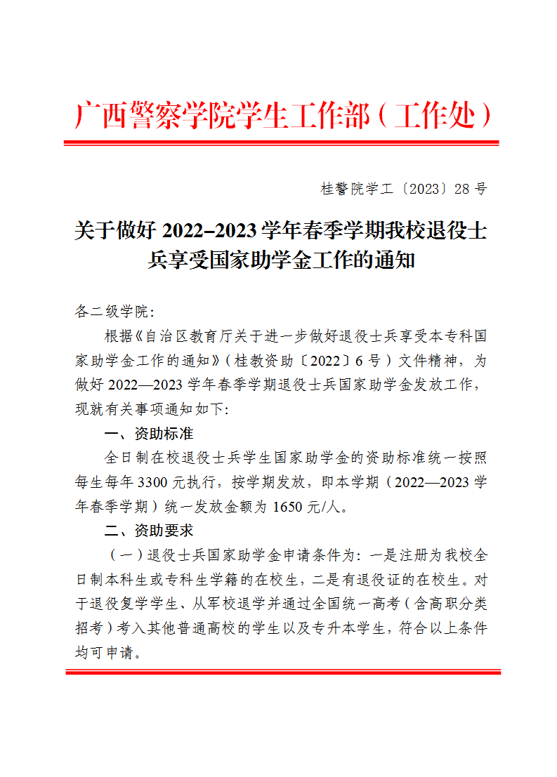 关于做好2022-2023学年春季学期TapTap退役士兵享受国家助学金工作的通知 来源: 发布时间:2023-03-09 09:00:49 浏览次数: 次 【字体:小 大】 附件2.2022-2023学年春季学期退役士兵国家助学金受助资格取消名单表.pdf附件3.2022-2023学年春季学期退役士兵国家助学金汇总表(新增).pdf附件4.退役士兵国家助学金申请表.pdf 分享到: 【打印正文】