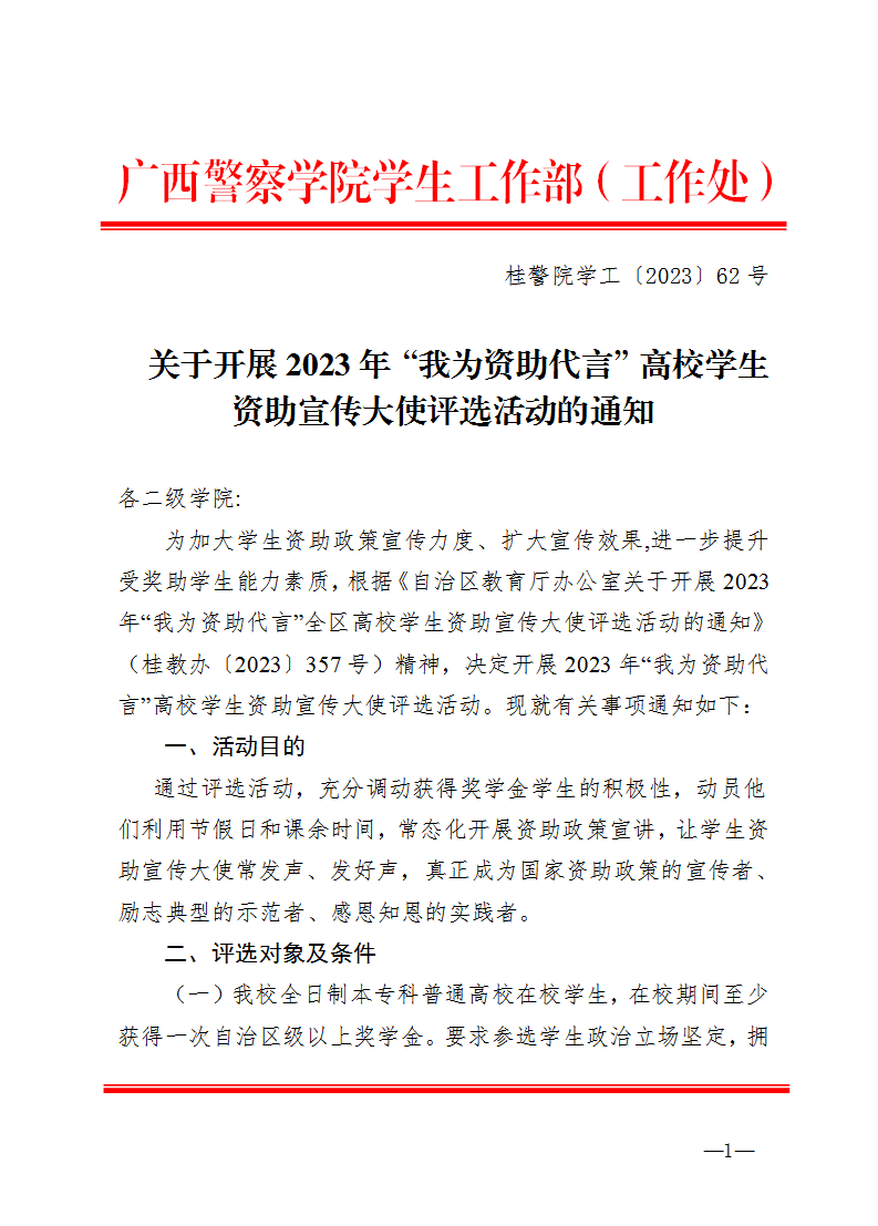 关于开展2023年“我为资助代言”高校学生资助宣传大使评选活动的通知