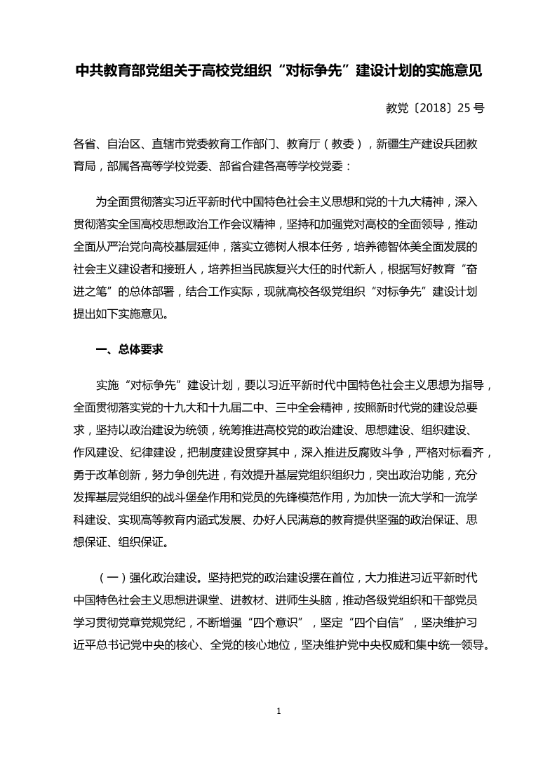 中共教育部党组关于高校党组织“对标争先”建设计划的实施意见