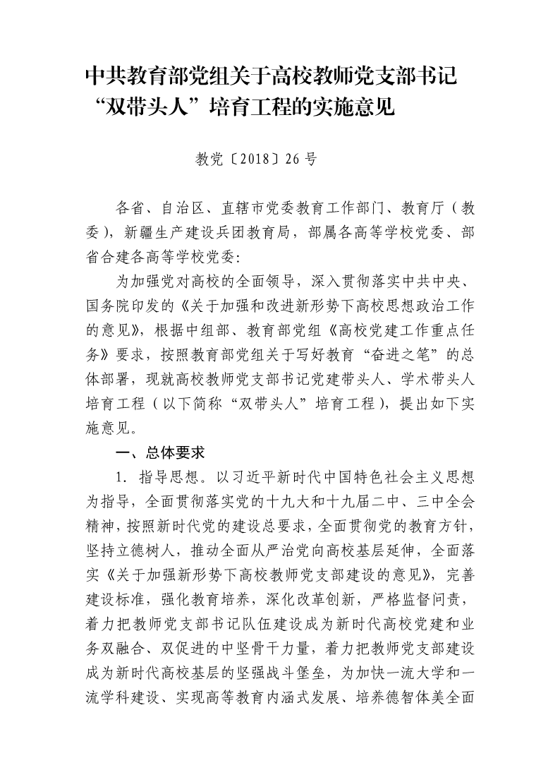 中共教育部党组关于高校教师党支部书记“双带头人”培育工程的实施意见