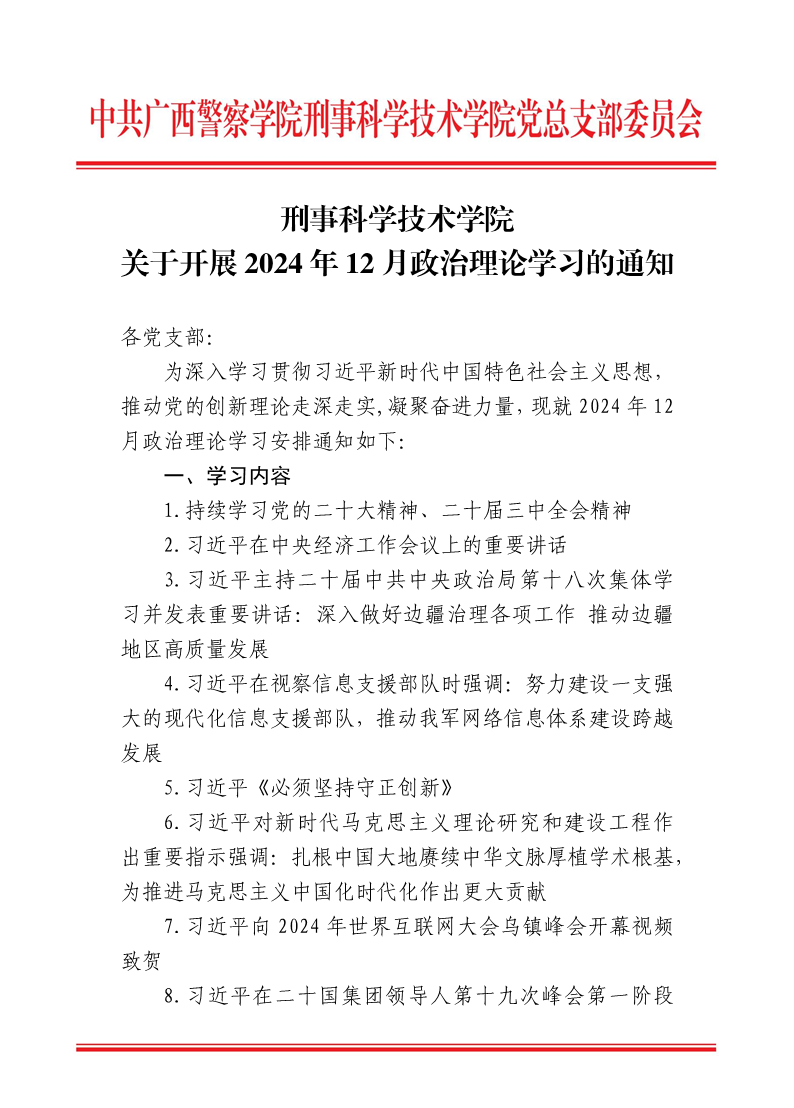 刑事科学技术学院关于开展2024年12月政治理论学习的通知