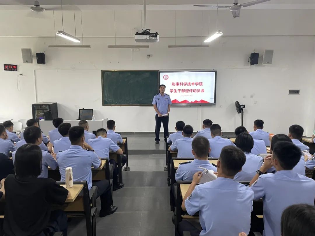 2023年10月18日中午12:30.刑事科学技术学院于仙葫校区4-204教室召开了学生干部迎评动员会。本次会议由党总支副书记黄建跃主持,学院分团委负责人李筹以及学院全体学生干部参加会议。