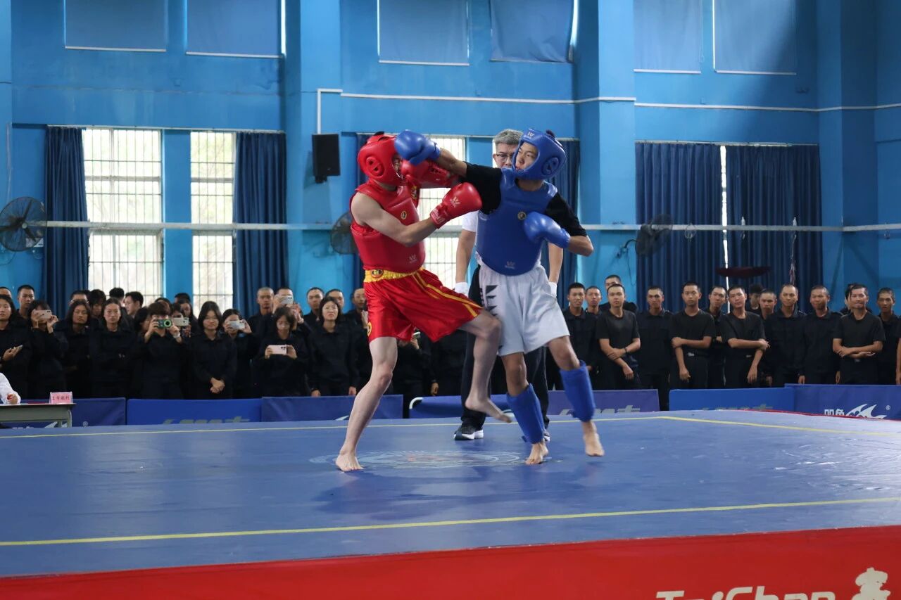 裁判哨声划破长空,散打运动员即刻进入竞技状态。赛场上,红蓝双方拳套交错,攻势凌厉,迅猛的突进动作与精湛的技战术配合,力量与技巧完美结合,迅速点燃全场比赛氛围。每次精彩的抱摔,每套凌厉的组合拳,都是他们日常训练的沉淀,尽显刑技学子的铁血精神。