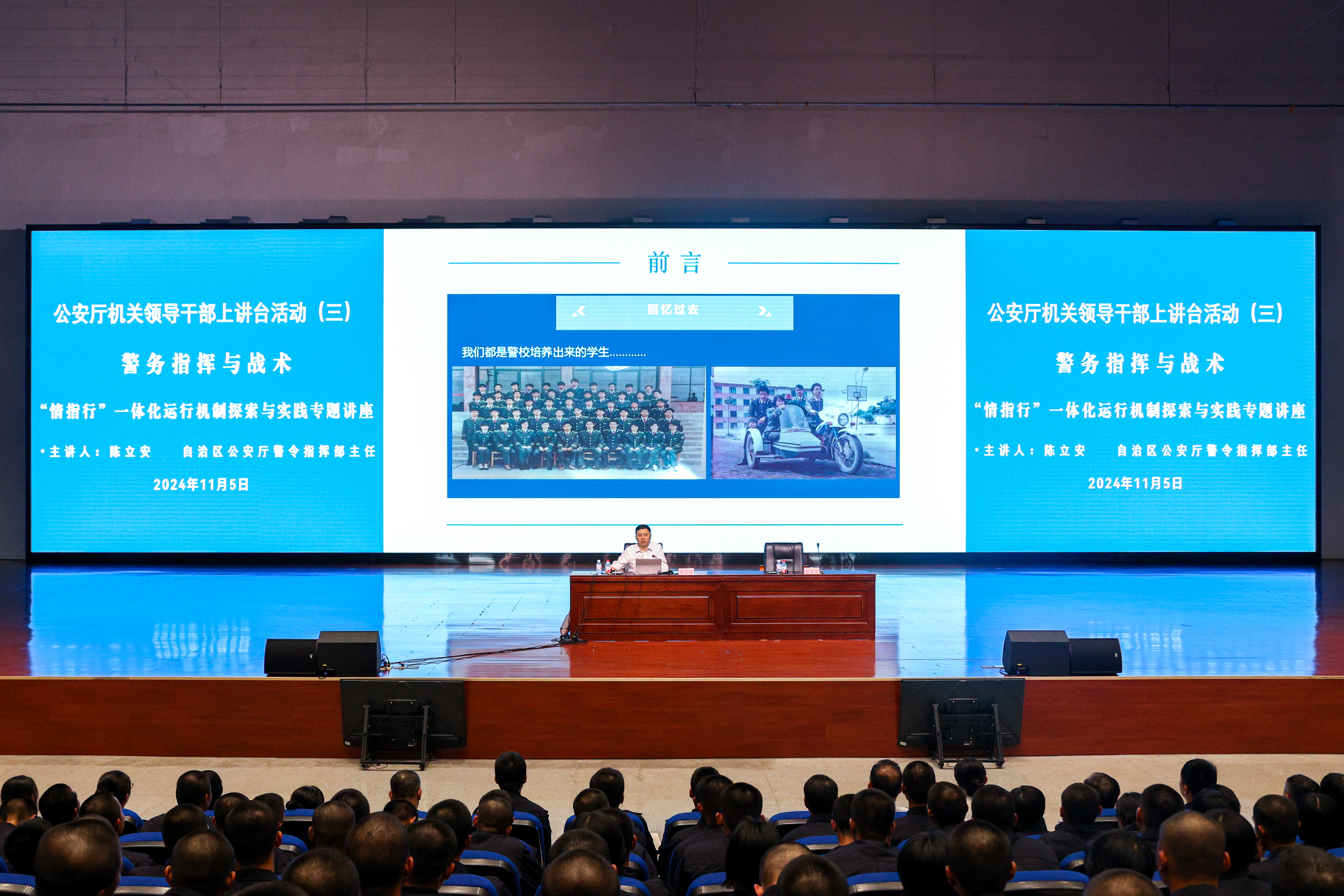 11月6日,自治区公安厅机关领导干部上讲台系列活动第三期在仙葫校区学术报告中心开讲,自治区公安厅警令指挥部主任陈立安受邀到TapTap开展警务指挥专题讲座。