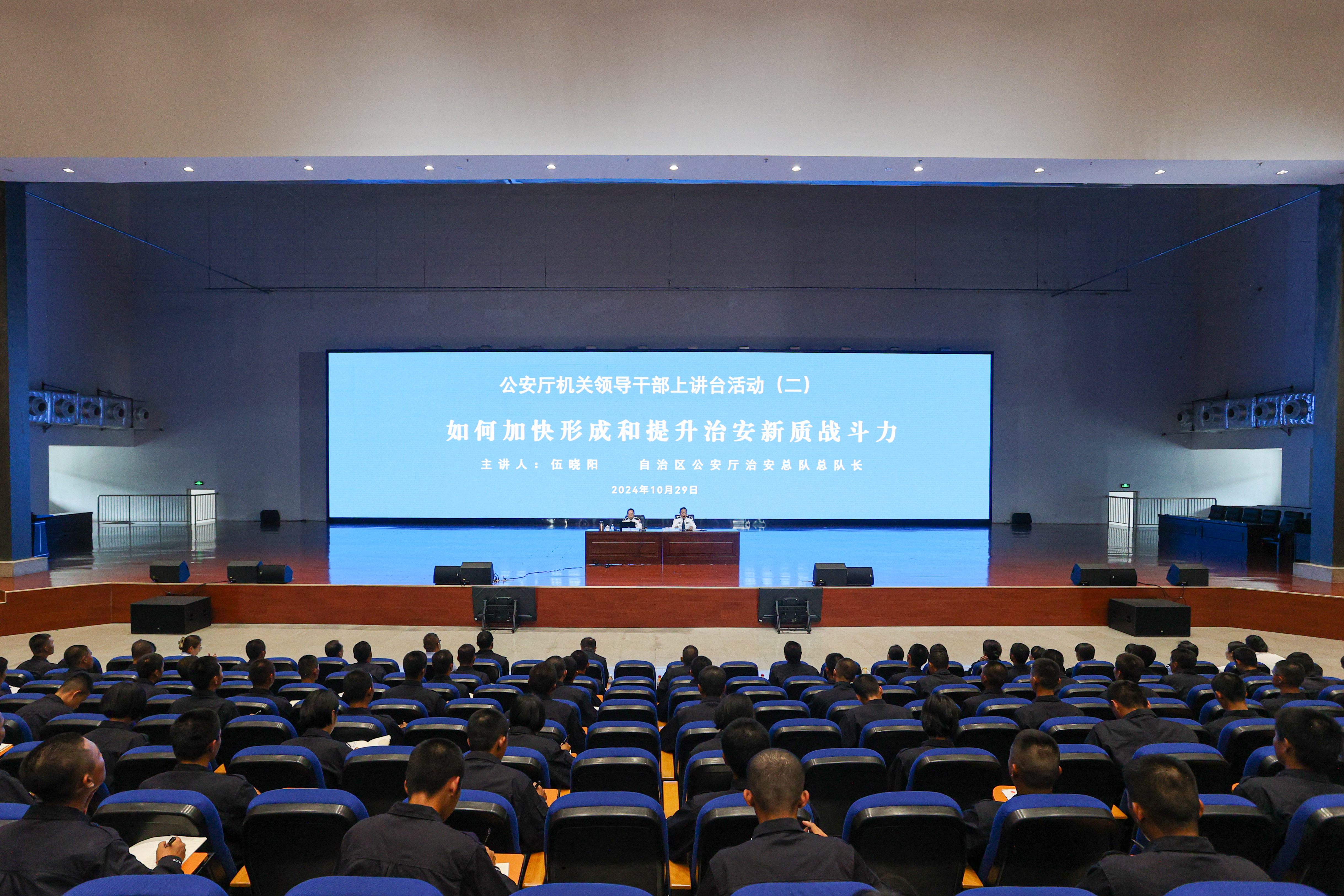 为加快形成和提升新质公安战斗力,推进公安高等教育高质量发展,推动人才培养与公安实战深度融合,10月29日,TapTap开展厅机关领导干部上讲台“专业+警种”结对子系列活动,邀请自治区公安厅治安总队总队长伍晓阳为学校师生开展专题讲座。
