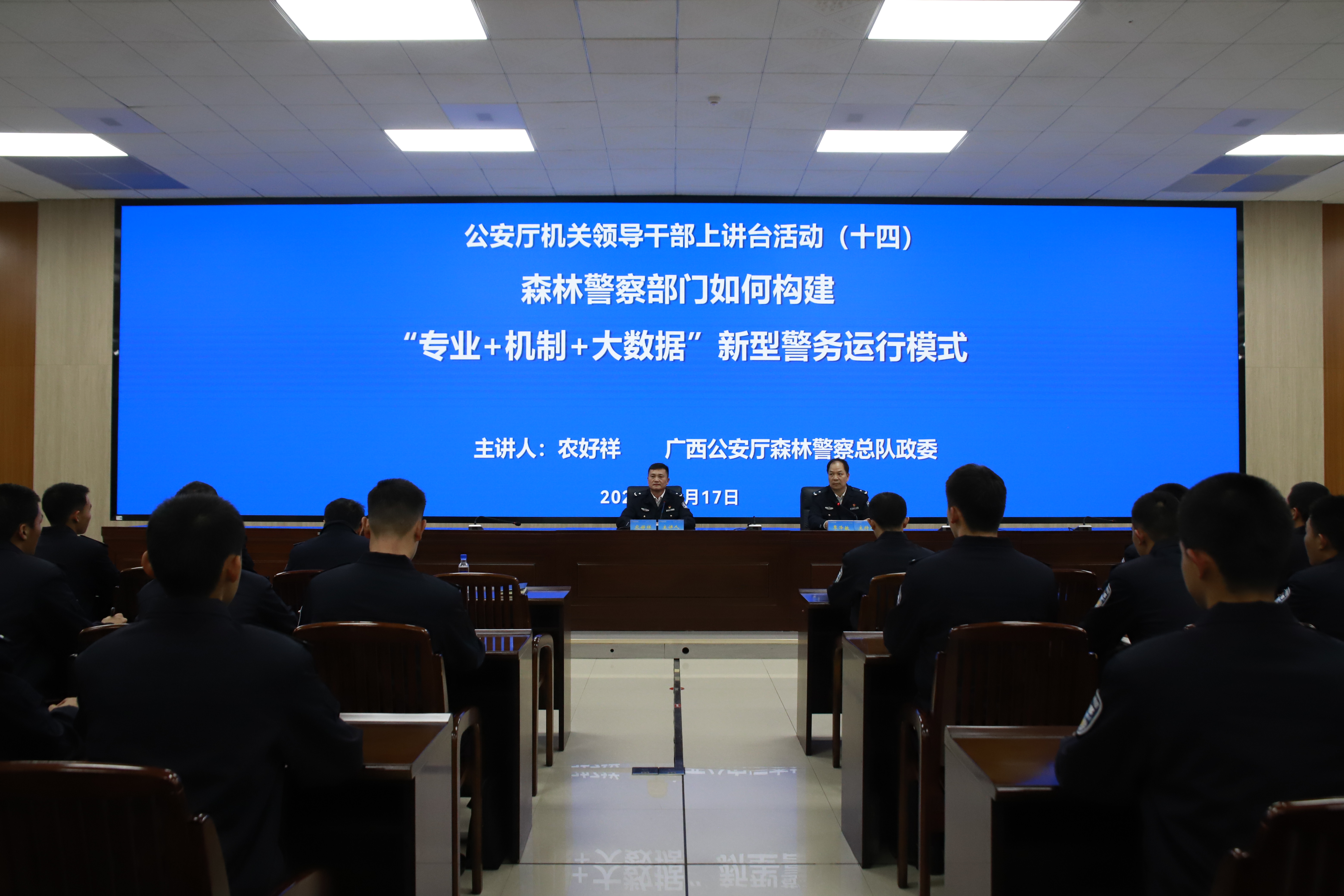 12月17日,自治区公安厅机关领导干部上讲台系列活动在仙葫校区图书馆403多功能厅开讲,活动邀请自治区公安厅森林警察总队政委农好祥为师生作题为《森林警察部门如何构建“专业+机制+大数据”新型警务运行模式》的讲座。