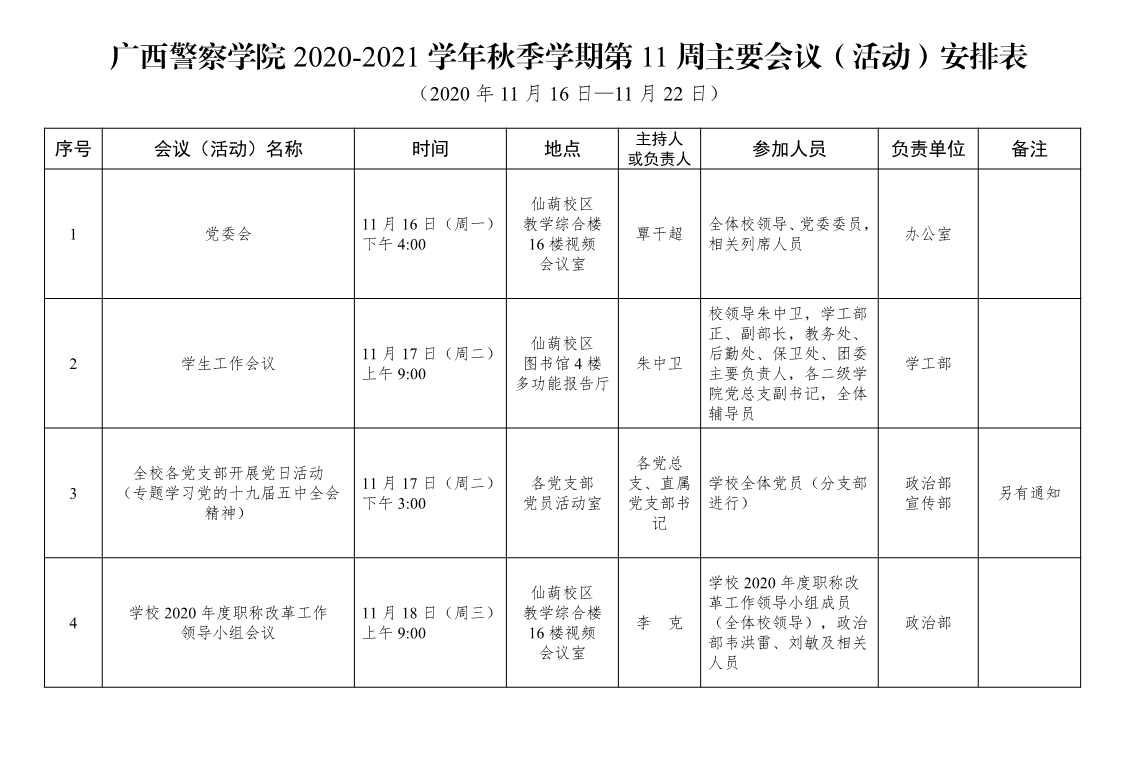 TapTap点点 2020-2021 学年秋季学期第 11 周主要会议(活动)安排表