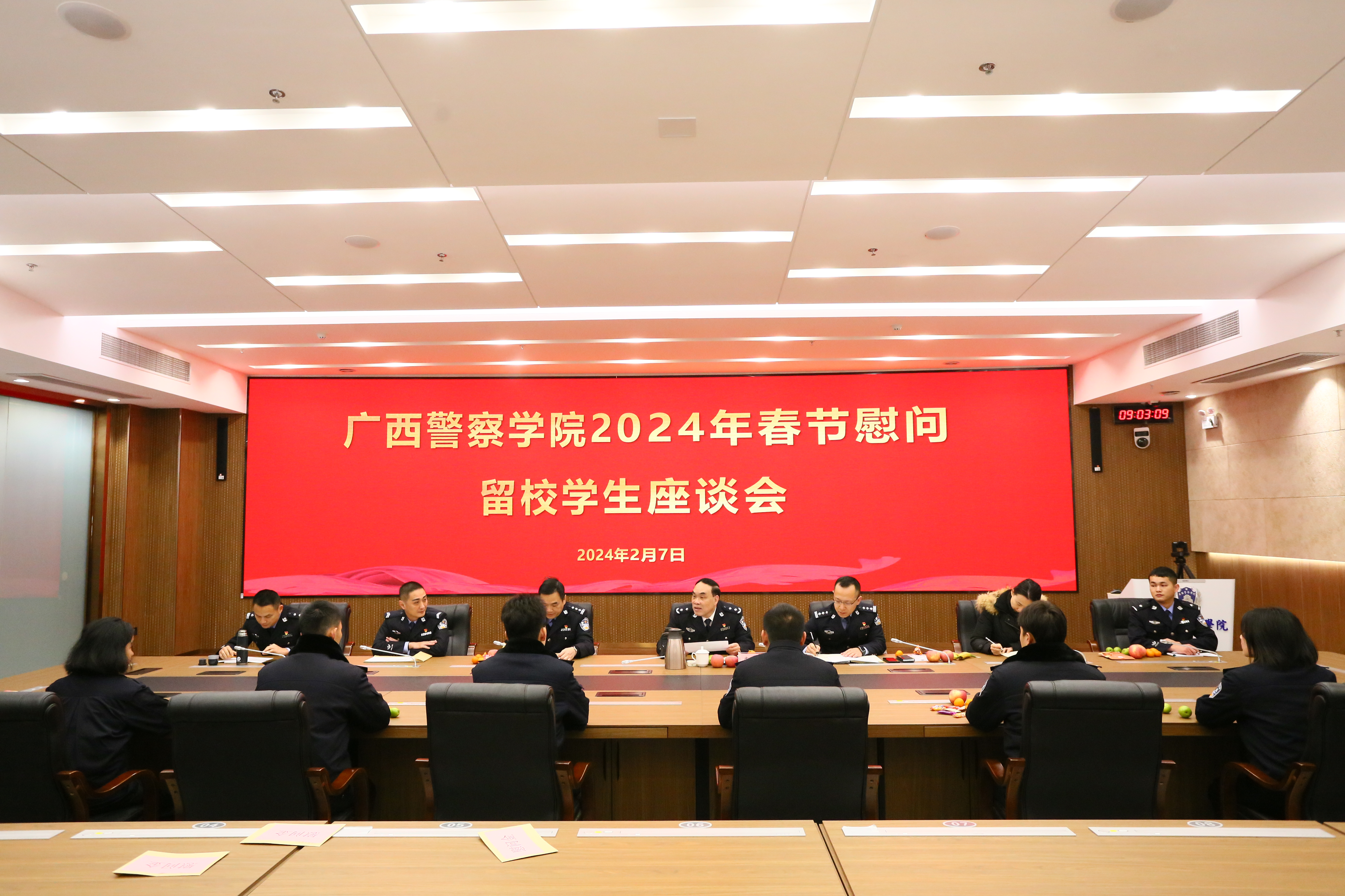 2月7日,学校召开留校学生慰问座谈会,副校长李克与寒假留校学生进行亲切交流,了解他们的家庭及学习生活情况、思想状况、留校期间的生活需求,并向留校的同学们发放了新春慰问品和慰问金。李克勉励同学们,要不畏困难,坚定理想信念、不断提升自我,努力谱写青春新篇章。随后,李克来到学校警用装备库,走访慰问值守在岗位上的同学们。