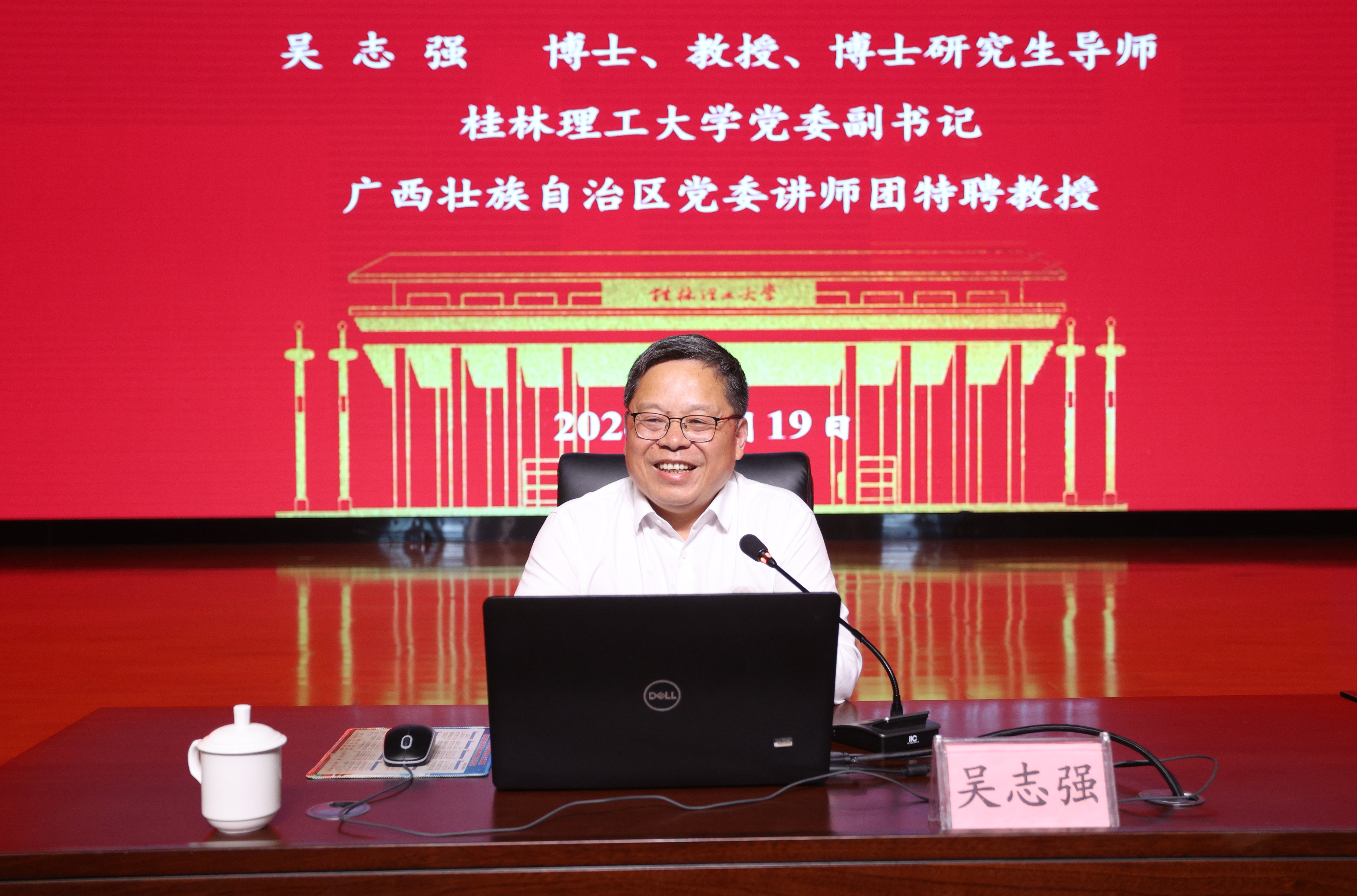 9月19日上午,学习贯彻党的二十届三中全会精神自治区党委讲师团特聘教授(专家)宣讲报告会在TapTap仙葫校区学术报告中心举行。自治区党委讲师团特聘教授(专家)、桂林理工大学党委副书记吴志强教授作宣讲报告。在家校领导副校长李克,自治区纪委监委驻学院纪检监察组组长、校党委委员、纪委书记黎东,校党委委员、总会计师叶露,副校长李兴林出席报告会。报告会由李克主持。
