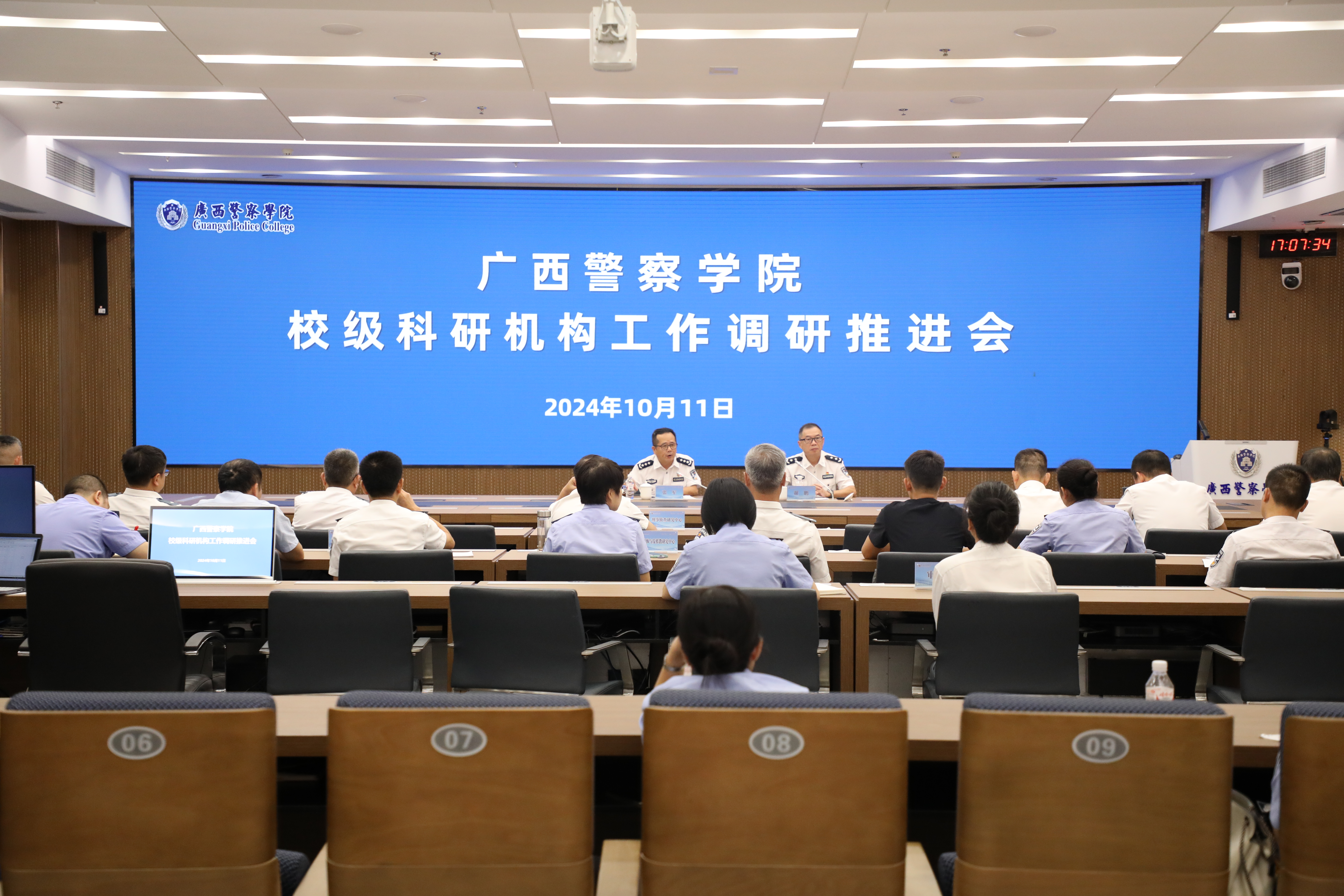 为进一步推动学校科研机构发展建设,激发科研机构和科研团队的创新活力,10月11日下午,学校在仙葫校区智慧公安研训基地召开科研机构工作调研推进会。校党委副书记、校长张军出席会议,会议由校党委委员、副校长谢鹏主持。