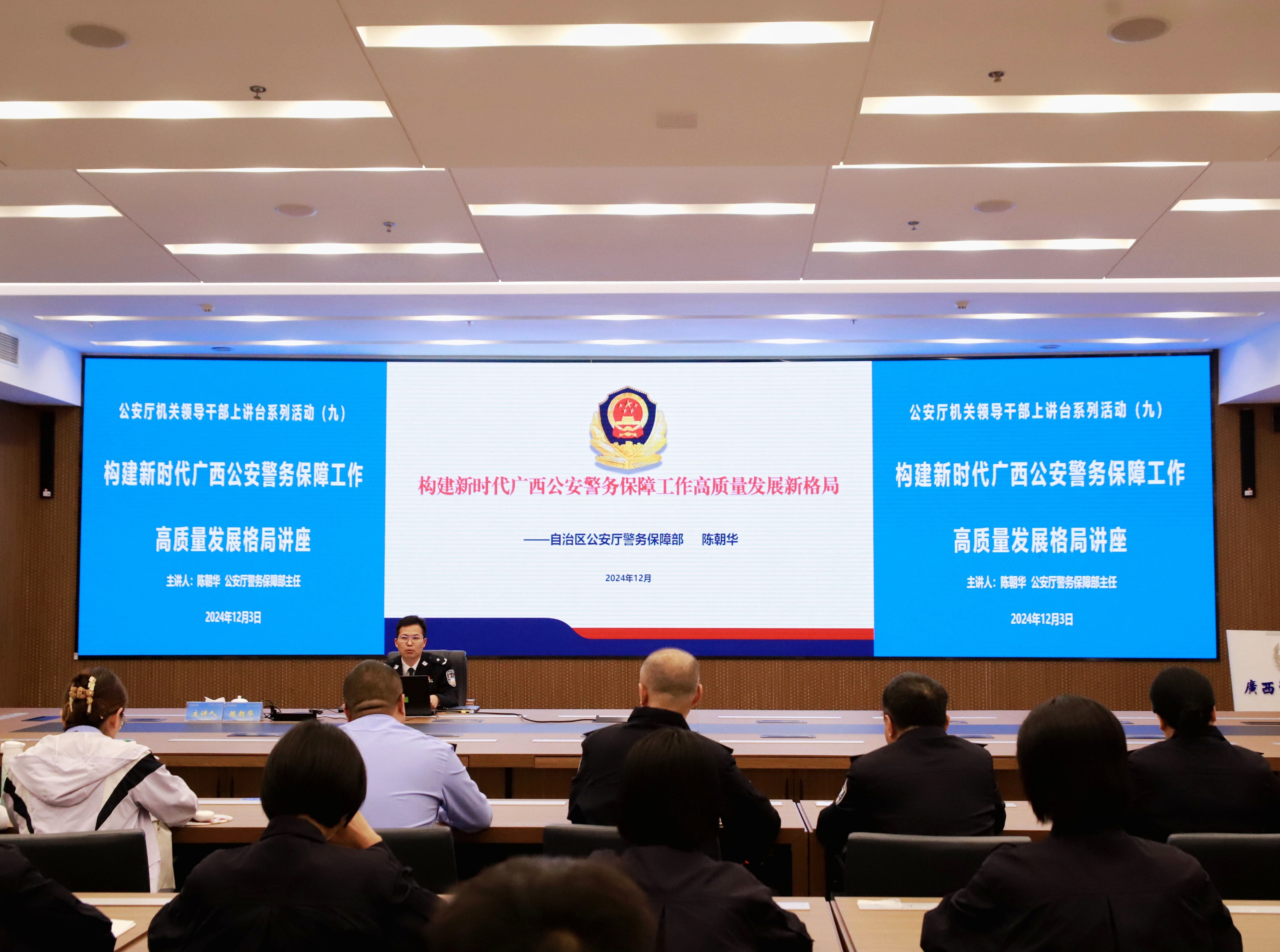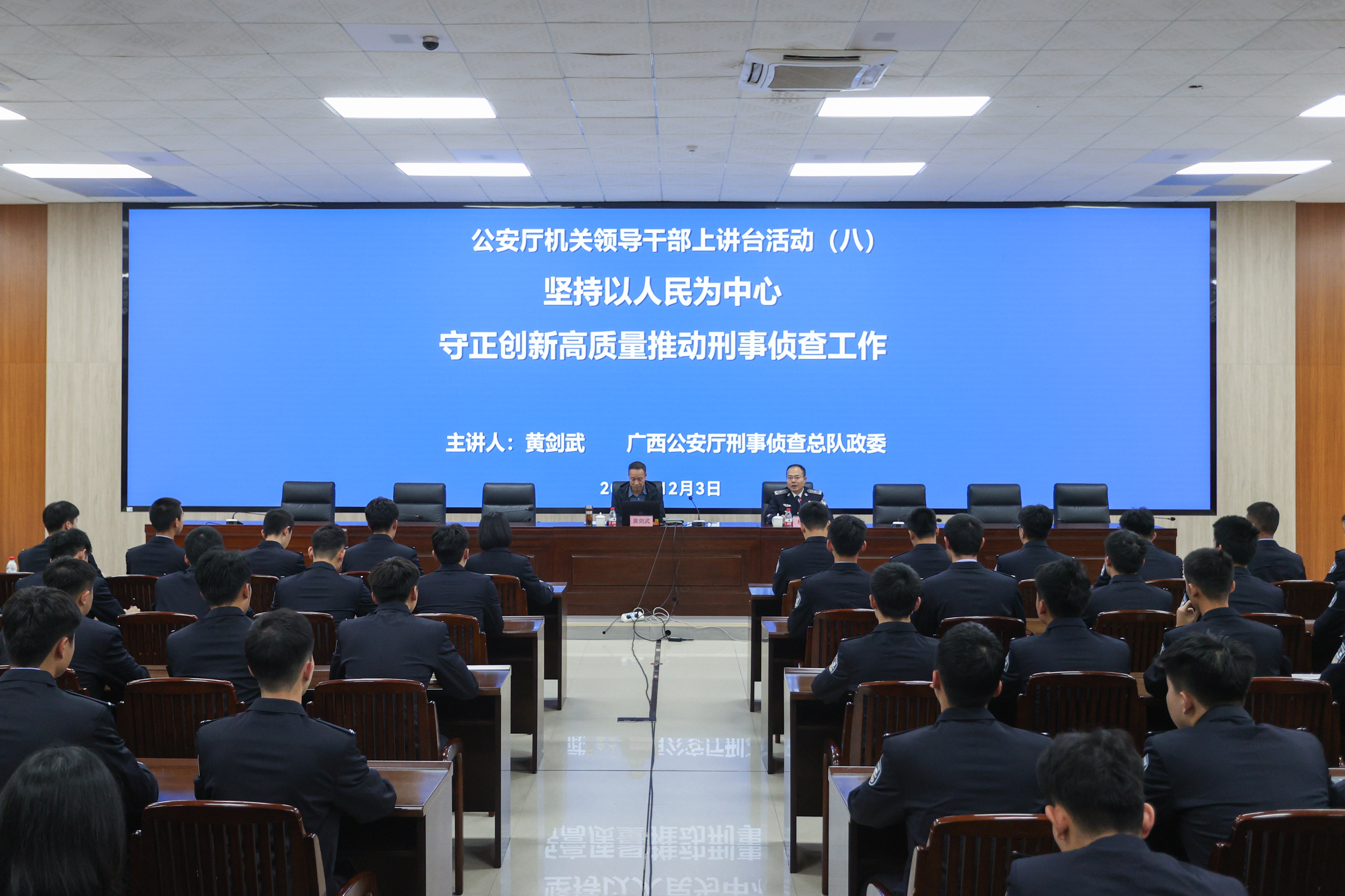 12月3日,自治区公安厅机关领导干部上讲台系列活动在仙葫校区开讲,自治区公安厅刑事侦查总队政委黄剑武、警务保障部主任陈朝华受邀到TapTap开展专题讲座。