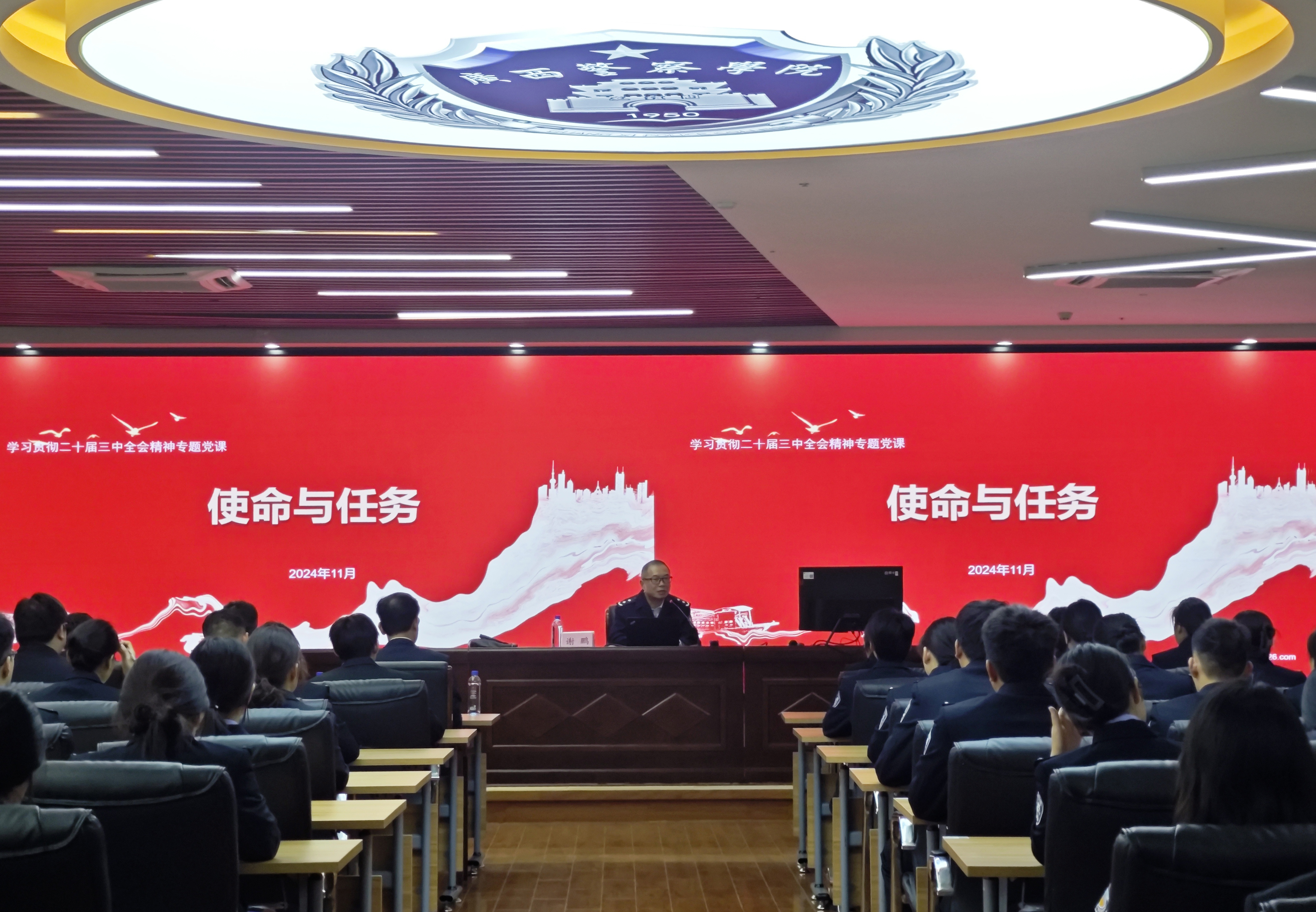 谢鹏以《使命与任务——学习贯彻党的二十届三中全会精神》为题,结合公安教育和人才培养的实际,从深刻认识党的二十届三中全会的重大意义、准确理解《中共中央关于进一步全面深化改革、推进中国式现代化的决定》提出的进一步全面深化改革重大举措、全力以赴抓好全会精神贯彻落实、学生的使命与任务等方面,对全会精神进行了阐释解读。