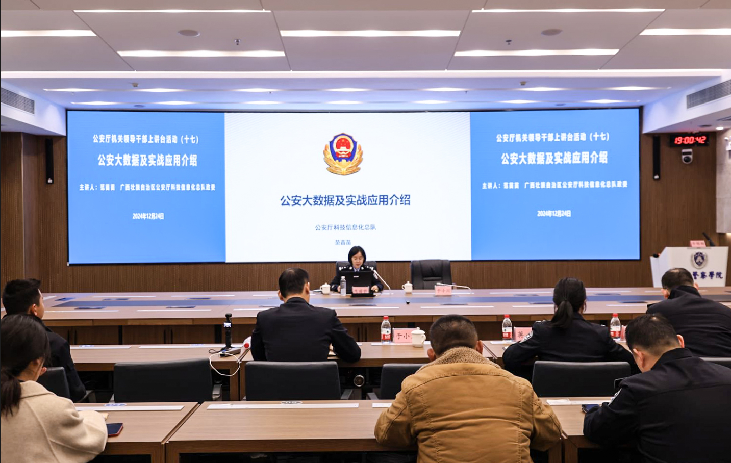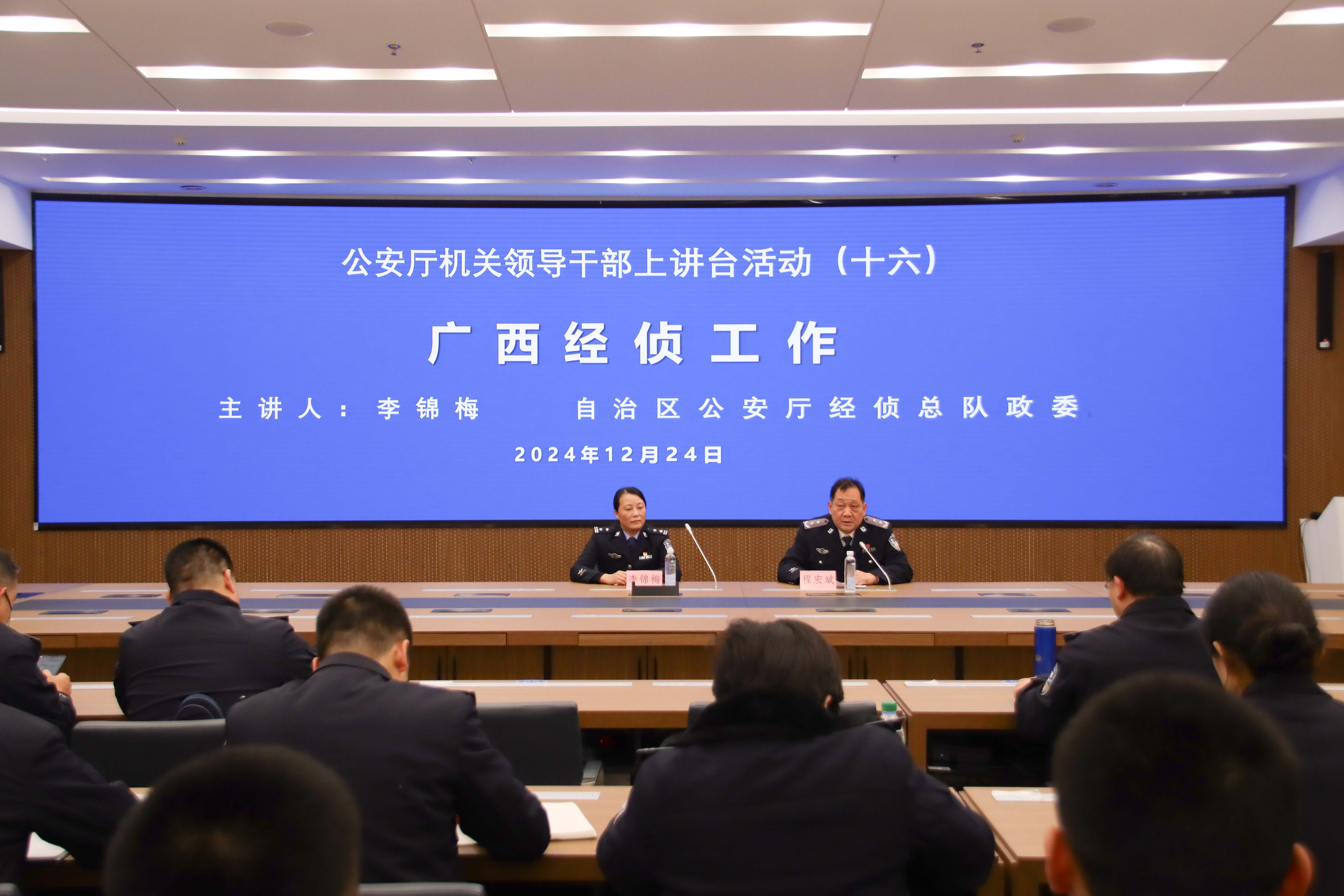 12月24日,自治区公安机关领导干部上讲台系列活动在仙葫校区举行,自治区公安厅机场公安局政委吴晖,经侦总队政委李锦梅、科技信息化总队政委范苗苗先后为师生作专题讲座。
