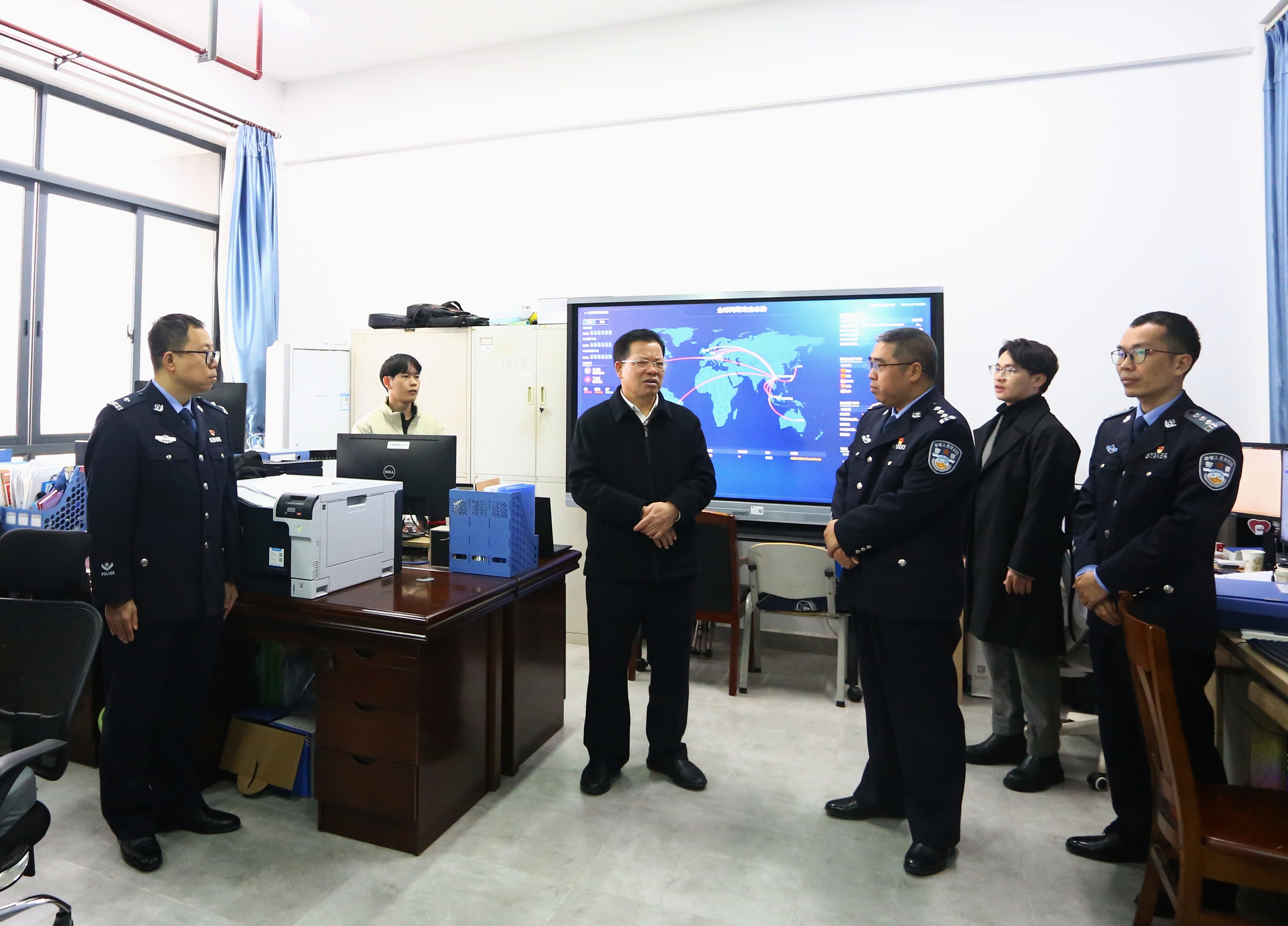 在网络信息中心,彭顺克充分肯定了网络信息中心取得的工作成效。他指出,网络信息中心要以系统思维推进网络建设、维护、运营、保障等工作,提升网络防御能力和应急响应水平,确保学校网络安全;要建立健全机制,对于负面舆情要及时研判、及时处置;要加强网管意识,依法依规,为消除网络杂音、坚持网络正面发声做好技术保障。