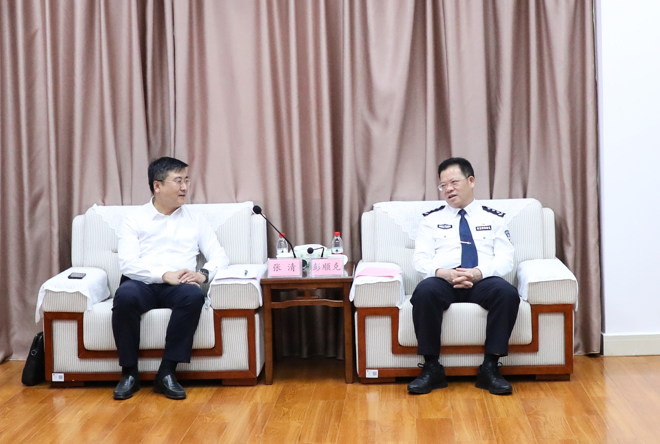 彭顺克对张清一行的到访表示热烈欢迎,感谢中国农业银行广西区分行多年来给予警院发展的大力支持。希望与中国农业银行广西区分行继续保持常态化沟通交流,在智慧校园建设、师生金融服务等方面强化合作,保持双方合作的连贯性,实现校银合作互利共赢局面。