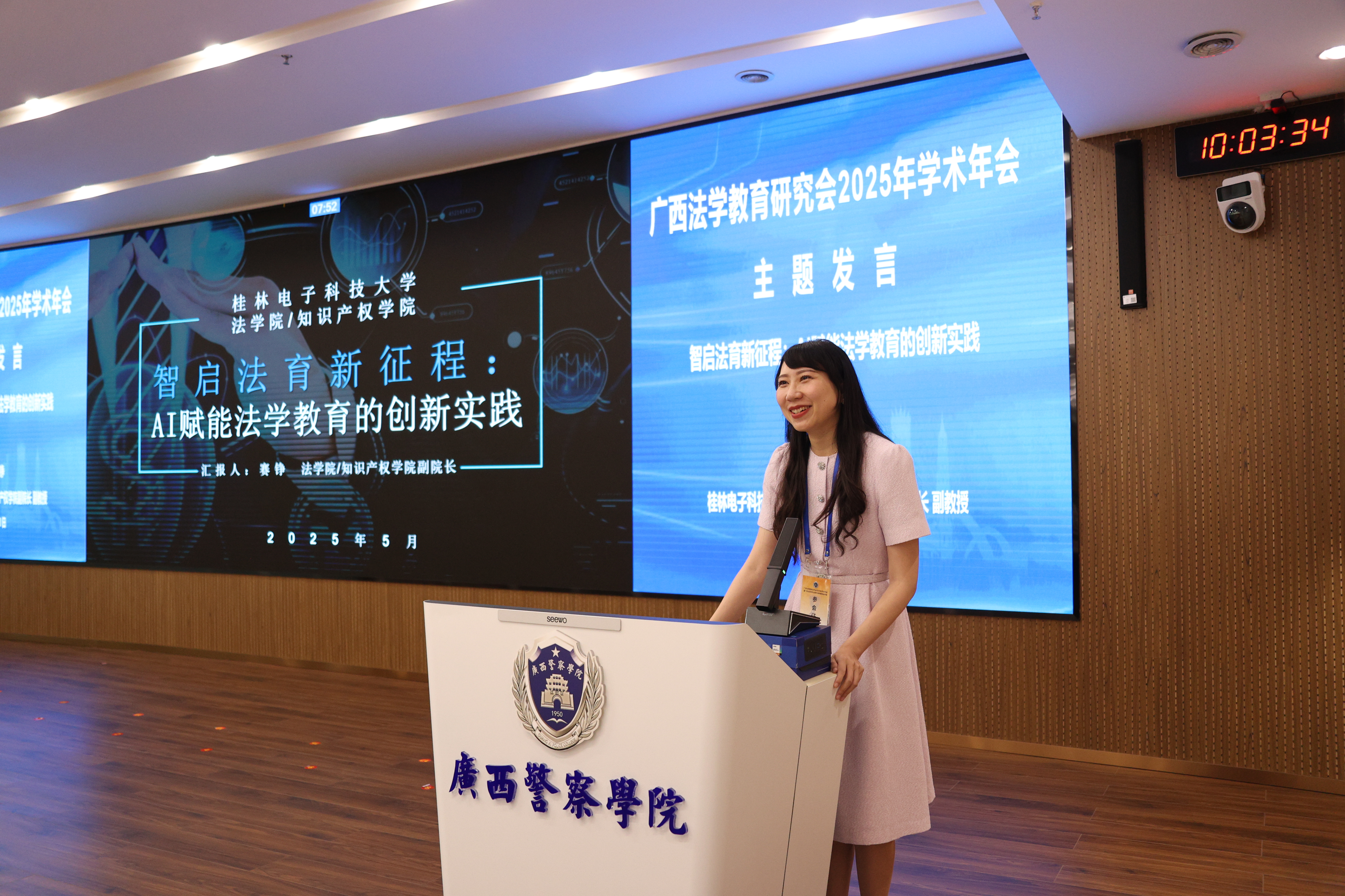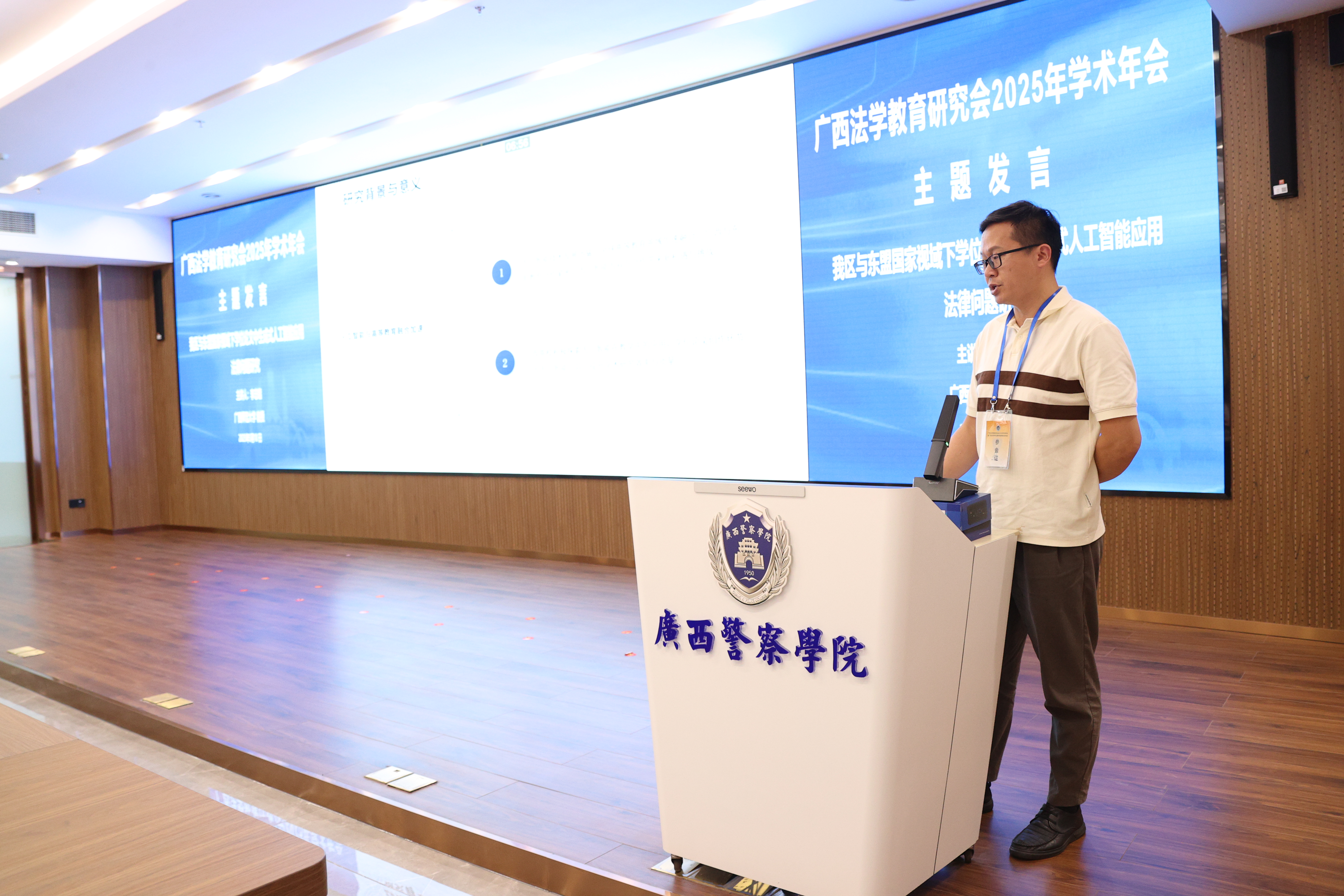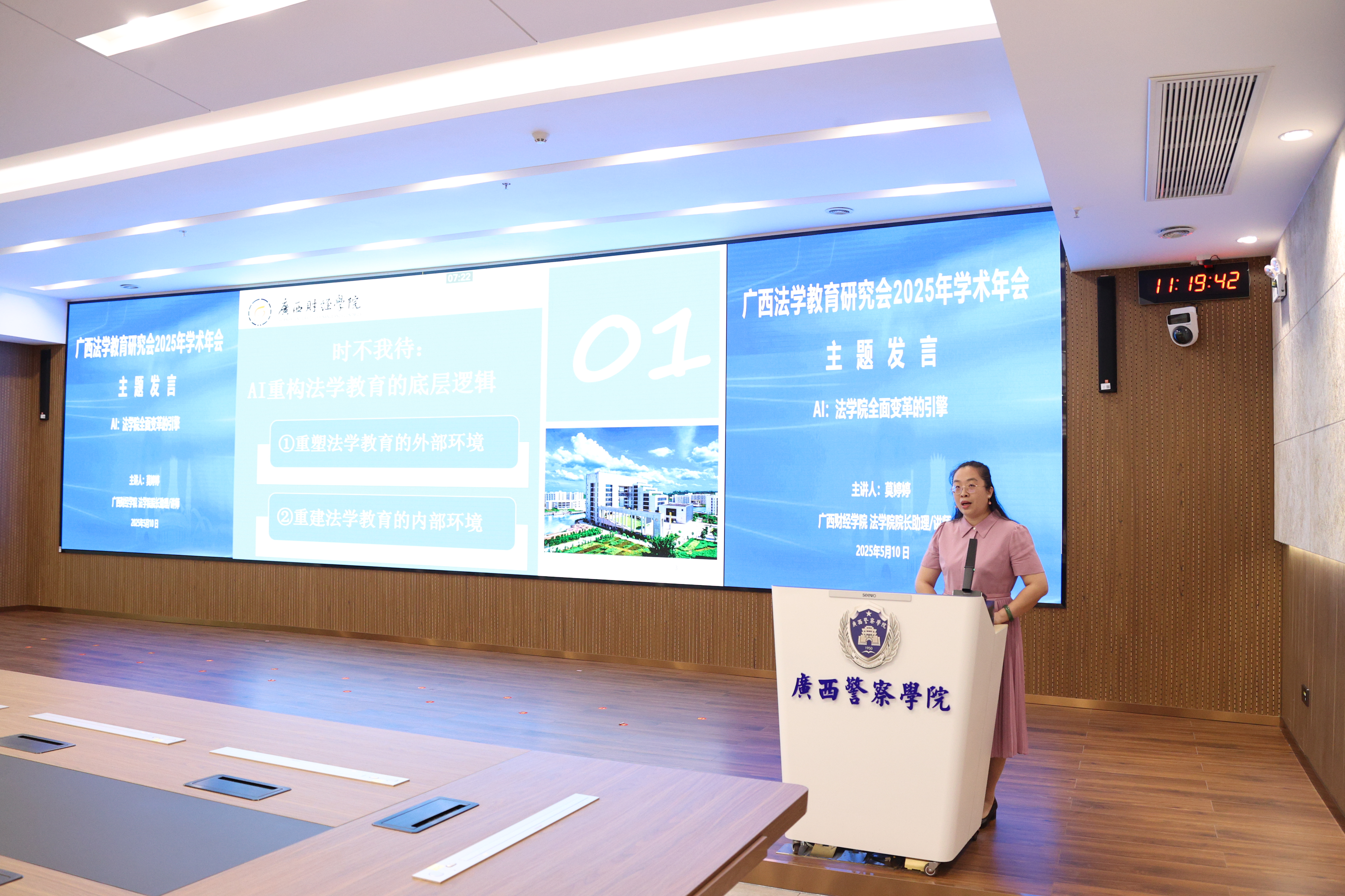 在主题发言环节,桂林电子科技大学法学院副院长赛铮、广西民族大学相思湖学院副教授梁旋、南宁师范大学法学与社会学院副教授文立彬、梧州学院法学院教师李硕华、桂林学院金融与法律学院副教授张晓敏、TapTap点点法学院副教授李蜜、广西师范大学法学院教授李志锴、广西民族大学法学院副教授杨海涛、广西财经学院法学院院长助理莫婷婷分别作主旨发言,分享了人工智能赋能法学教育、应用性法学人才培养等方面的创新实践,提出了人工智能时代对法学教育教学、人才培养、数字化教学模式的思考。