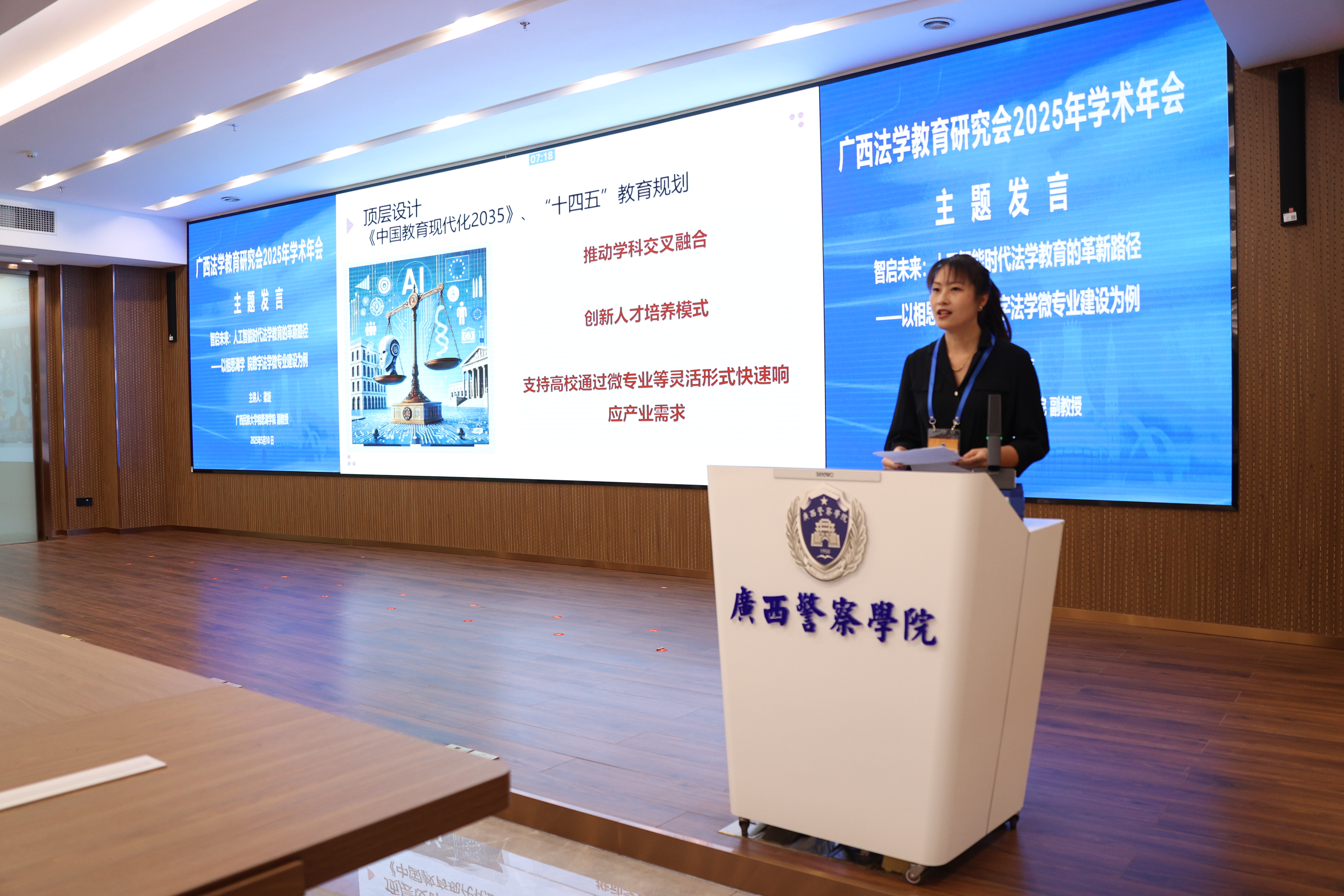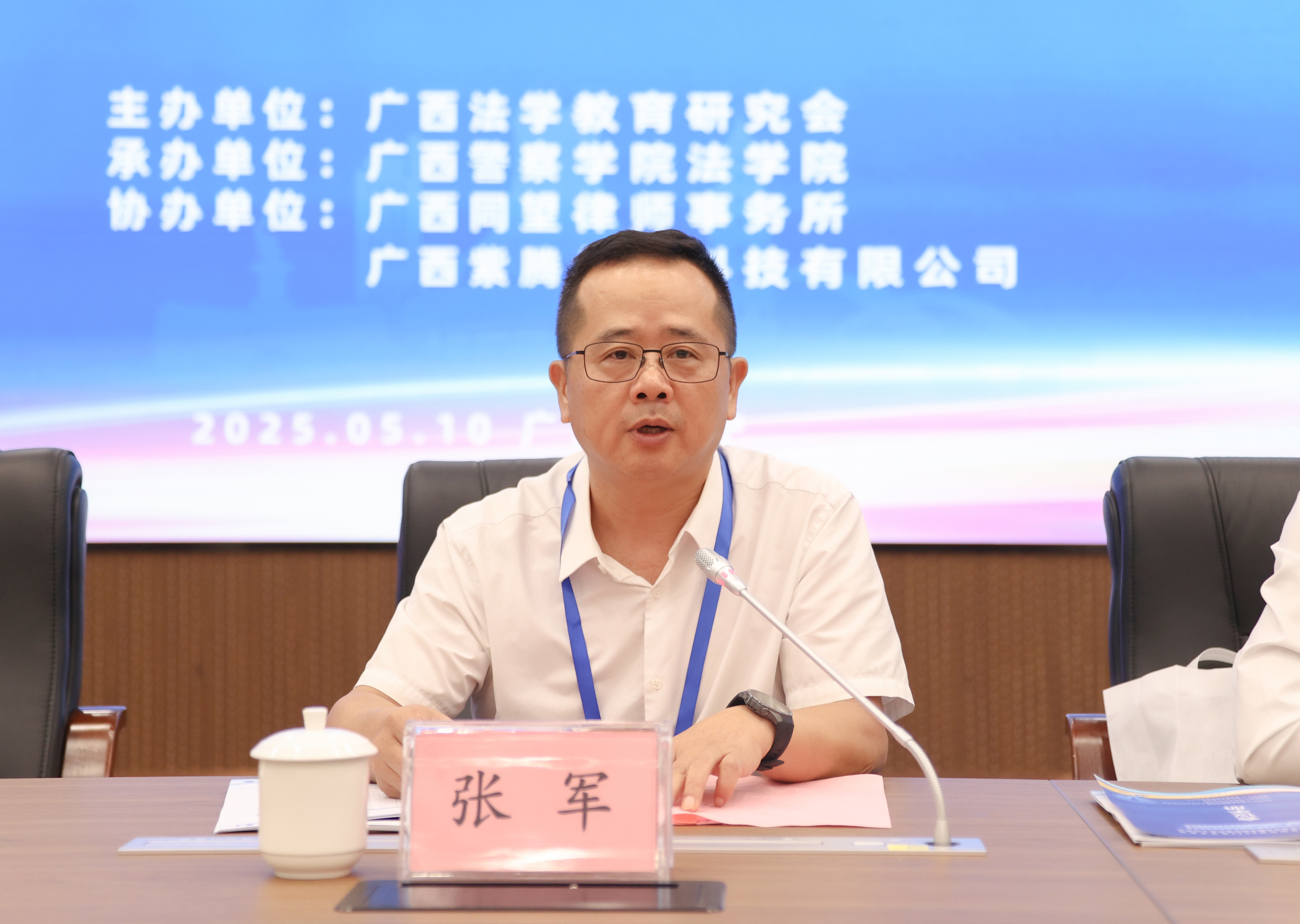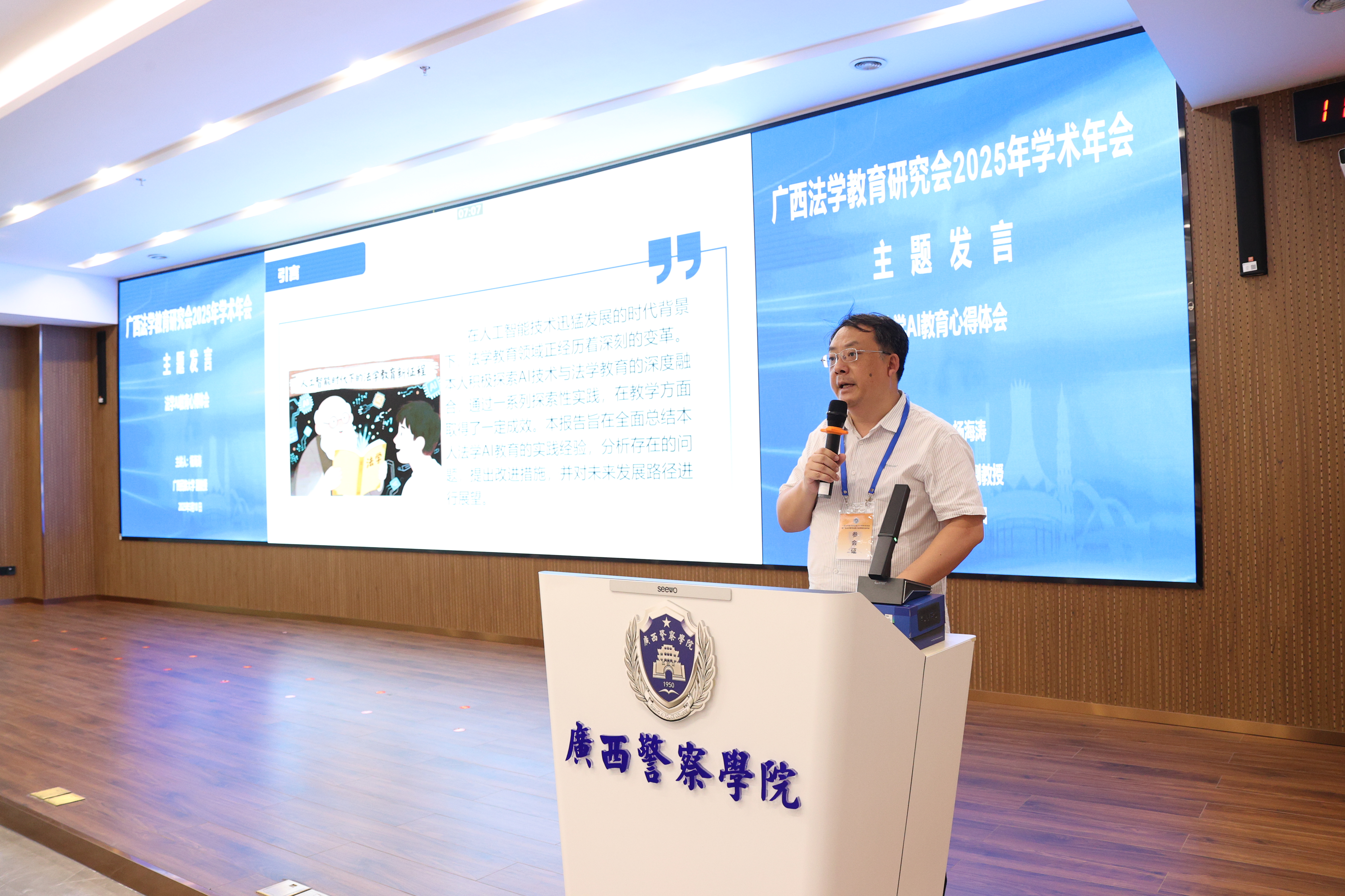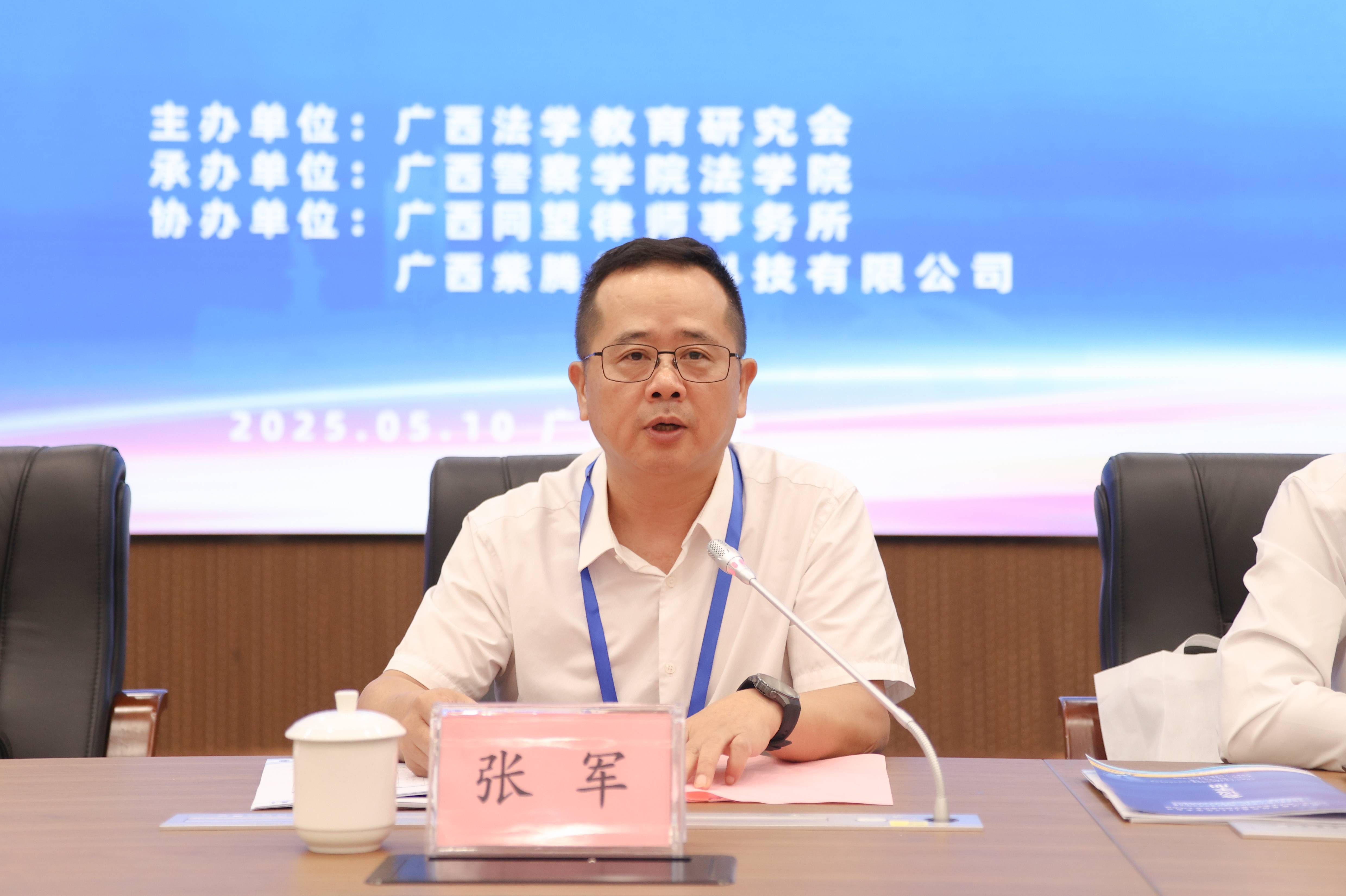 张军对广西法学教育研究会2025年学术年会的召开表示热烈祝贺。他表示,广西法学教育研究会积极推动人工智能赋能法学教育,探索智慧法治建设新路径,旨在促进法学教育与科技进步的深度融合。张军为法学教育应对人工智能时代机遇与挑战提出四点建议:一是加强党的领导,确保法学教育正确政治方向,守牢法学教育的意识形态阵地。二是坚持守正创新,推动法学教育高质量发展。积极探索学科交叉融合新模式,大力推进新兴法学学科建设,切实提高法治人才培养标准。三是推进理论研究,为法治广西建设提供智力支持。四是注重创新驱动,推动法学教育与人工智能深度融合。打破传统学科壁垒,构建法学与数据科学、计算机科学等前沿领域交叉融合的创新体系。张军指出,应以高度的使命感与前瞻性,乘势而上、主动作为,将“人工智能+”深度融入法学教育,全方位推动广西法学教育数字化转型与跨越式发展,不断开创广西法治人才培养和法学教育研究的新局面,为奋力谱写中国式现代化广西篇章作出更大的贡献。