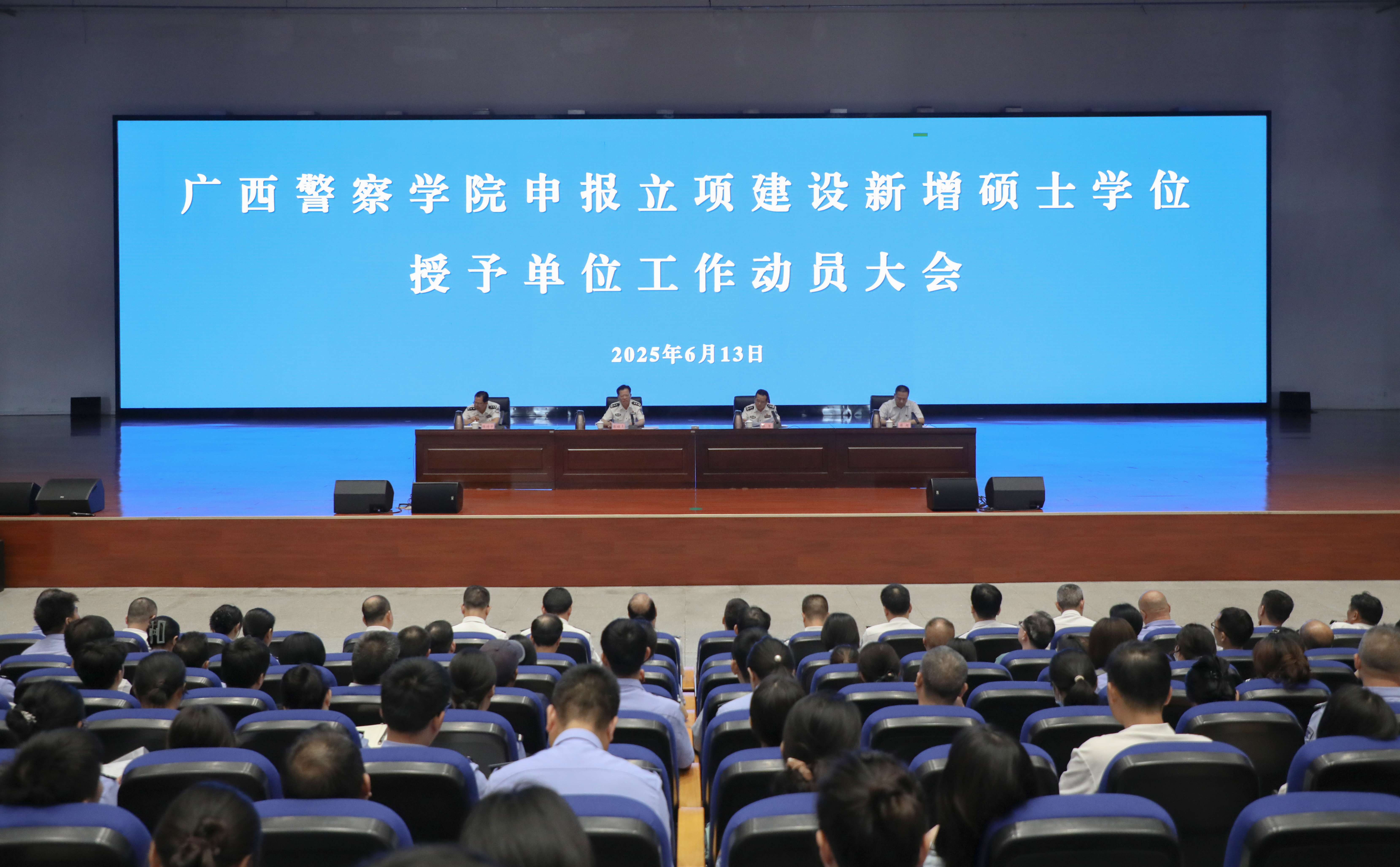 彭顺克指出,当前学校正处于申硕重要窗口期,要瞄准2025年获批“立项建设新增硕士学位授予单位”、2029年获批“硕士学位授予单位和硕士专业学位授权点”两个时间节点,发挥好学校行业优势、区位优势,找准定位、用好政策、对标建设、提升内涵,全面做好申硕各项工作,努力开创广西公安高等教育高质量发展新局面。