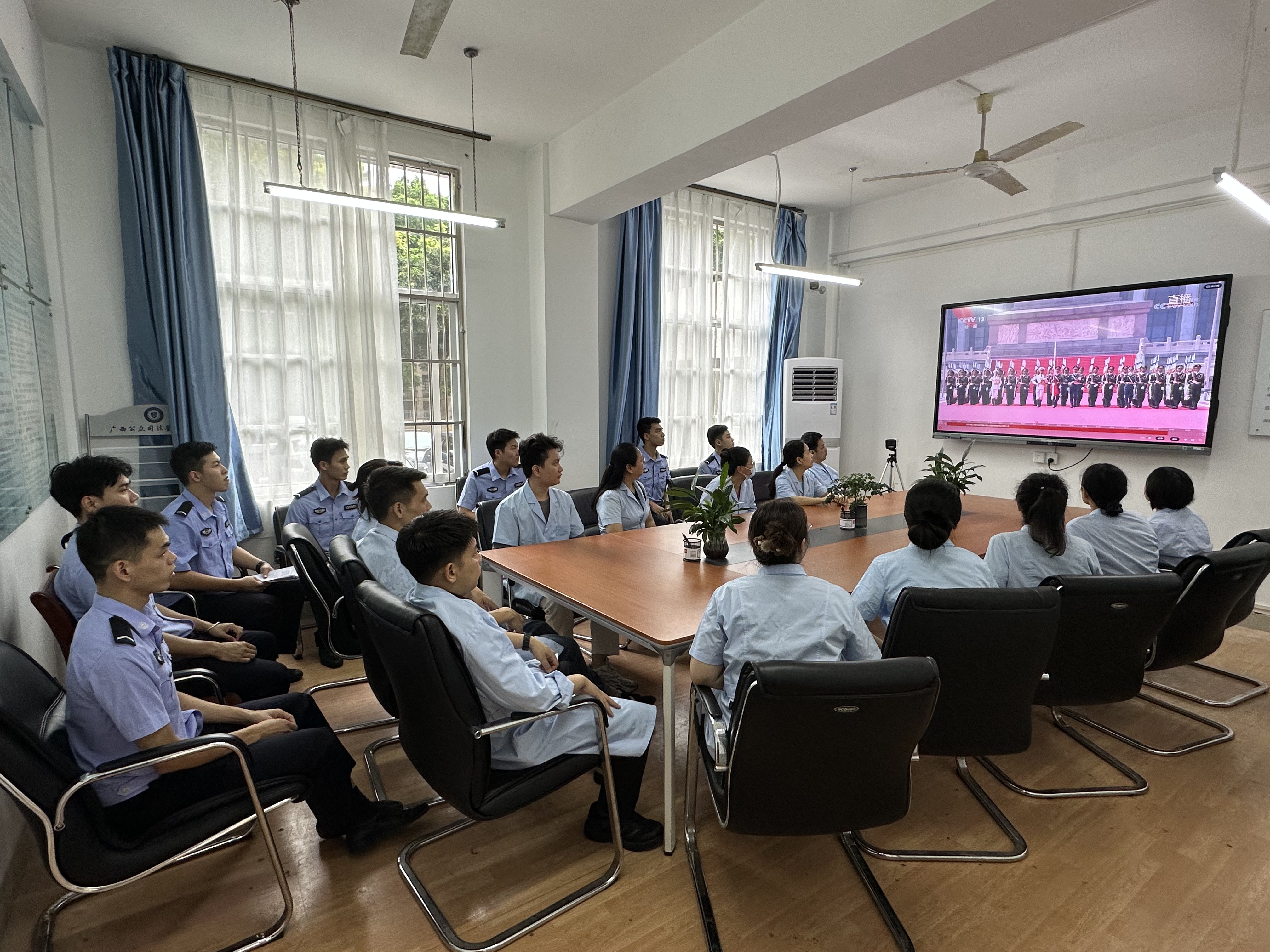 长湖校区公众司法鉴定中心全体员工和实习生集中收看纪念大会