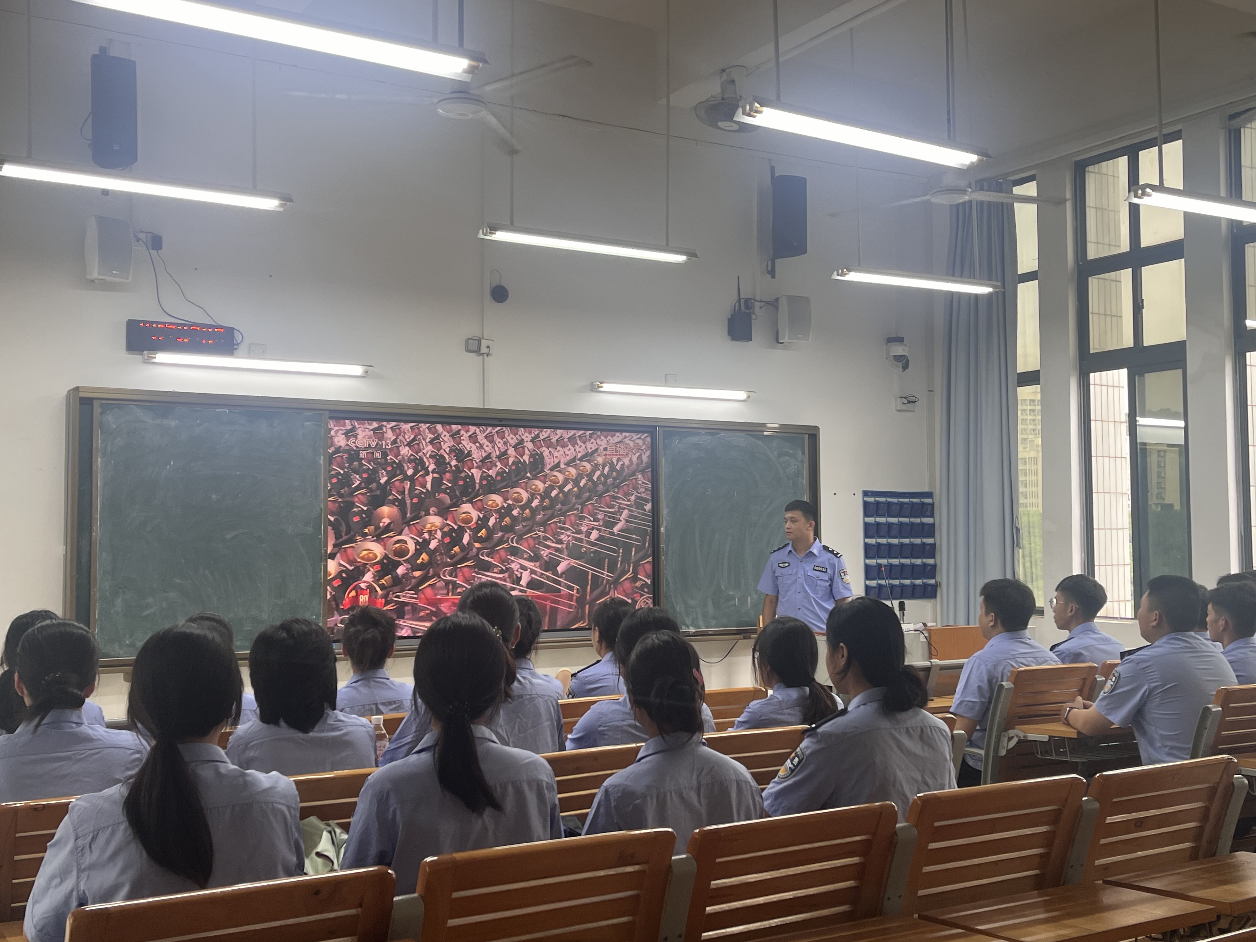 师生共同观看纪念抗战胜利80周年大会,这是一堂生动的思政课,是一场教育引导全校师生赓续红色血脉的精神洗礼。我们要把伟大抗战精神融入育人全过程,充分挖掘和展示校史中蕴含的红色基因,构建红色文化、英模文化、法治文化、警营文化“四位一体”的忠诚文化育警体系,开展抗战历史教育、开设红色课程、组织缅怀先烈活动,厚植学生家国情怀,筑牢信仰之基,引导师生从历史中汲取精神养分,转化为教师躬耕教坛、学生刻苦学习训练的行动,勇担时代使命,为实现中华民族伟大复兴的中国梦而努力奋斗。