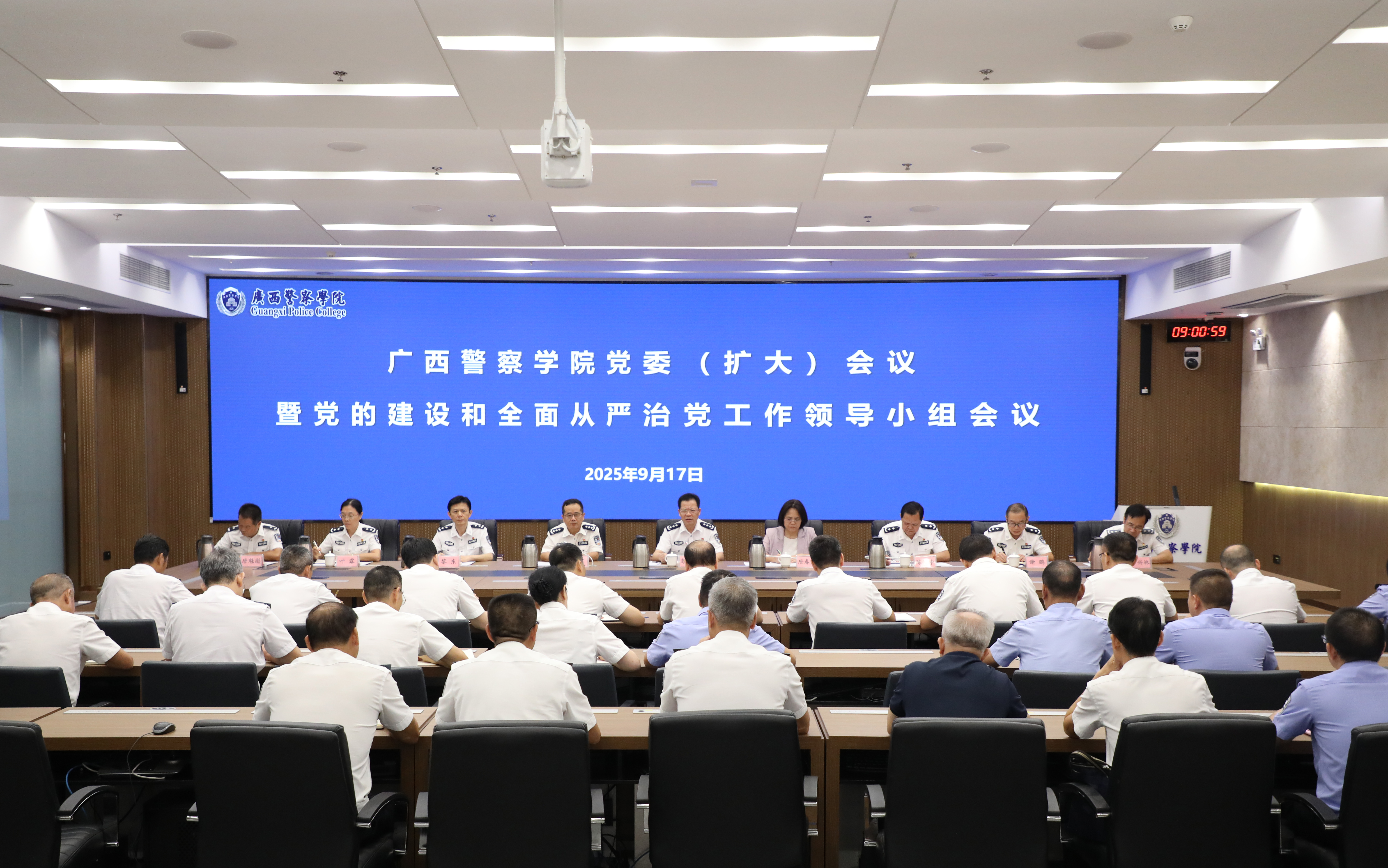 9月17日上午,学校在仙葫校区智慧公安研训基地召开党委(扩大)会议暨党的建设和全面从严治党工作领导小组会议,传达学习习近平总书记关于作风建设的重要指示、中央党的建设工作领导小组会议精神和自治区党委常委会会议暨自治区党委党的建设工作领导小组会议精神,总结学校深入贯彻中央八项规定精神学习教育开展情况,研究部署巩固拓展学习教育成果、推进作风建设常态化长效化工作。自治区党委教育工委组织部部长唐春燕到会指导。学校党委书记彭顺克主持会议并讲话。学校党委副书记、校长张军,学校党委委员、副校长陈恃中,自治区纪委监委驻学校纪检监察组组长、学校党委委员、纪委书记黎东,学校党委委员、副校长谢鹏,学校党委委员、总会计师叶露,副校长李兴林,学校党委委员、副校长唐魁彪出席会议。