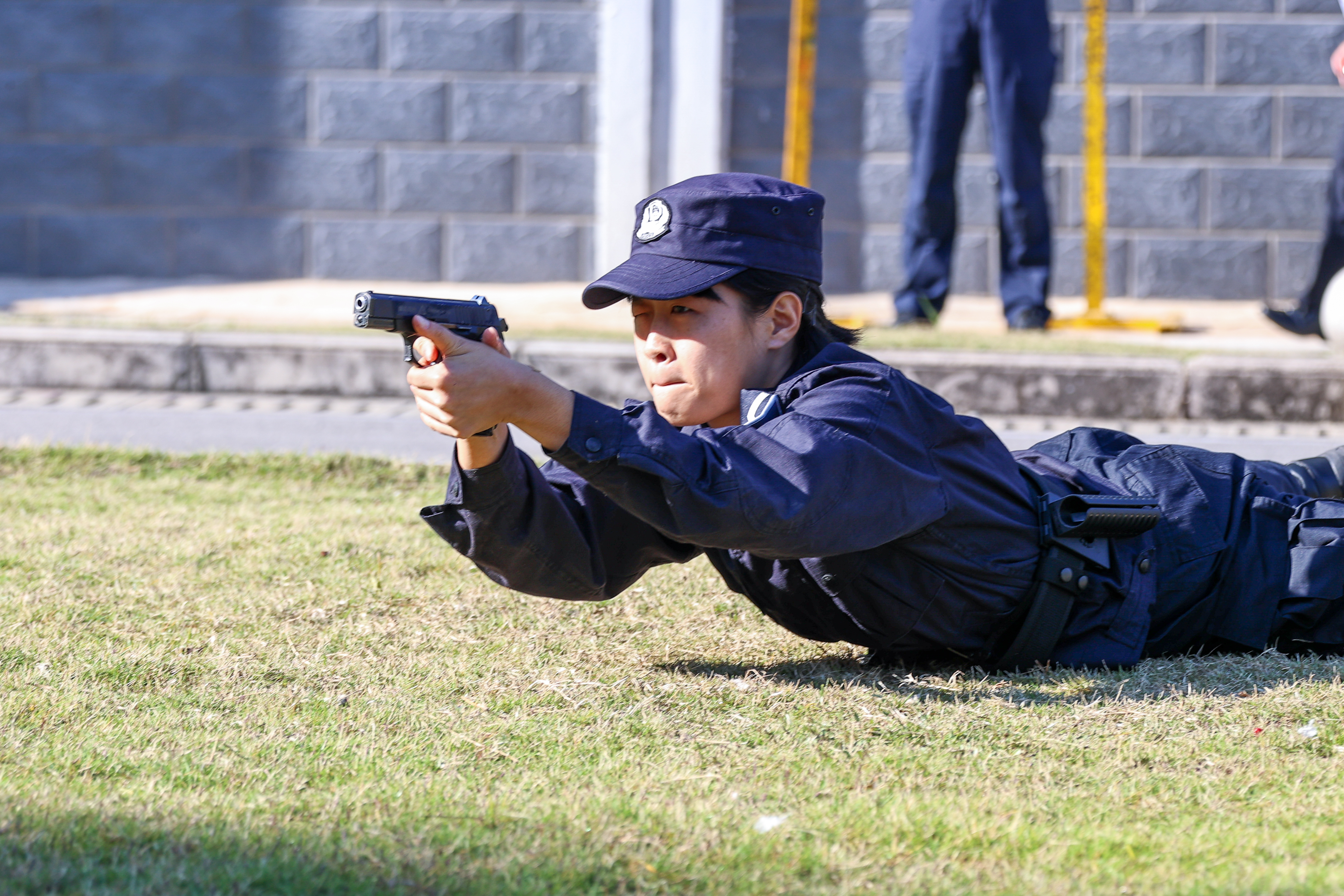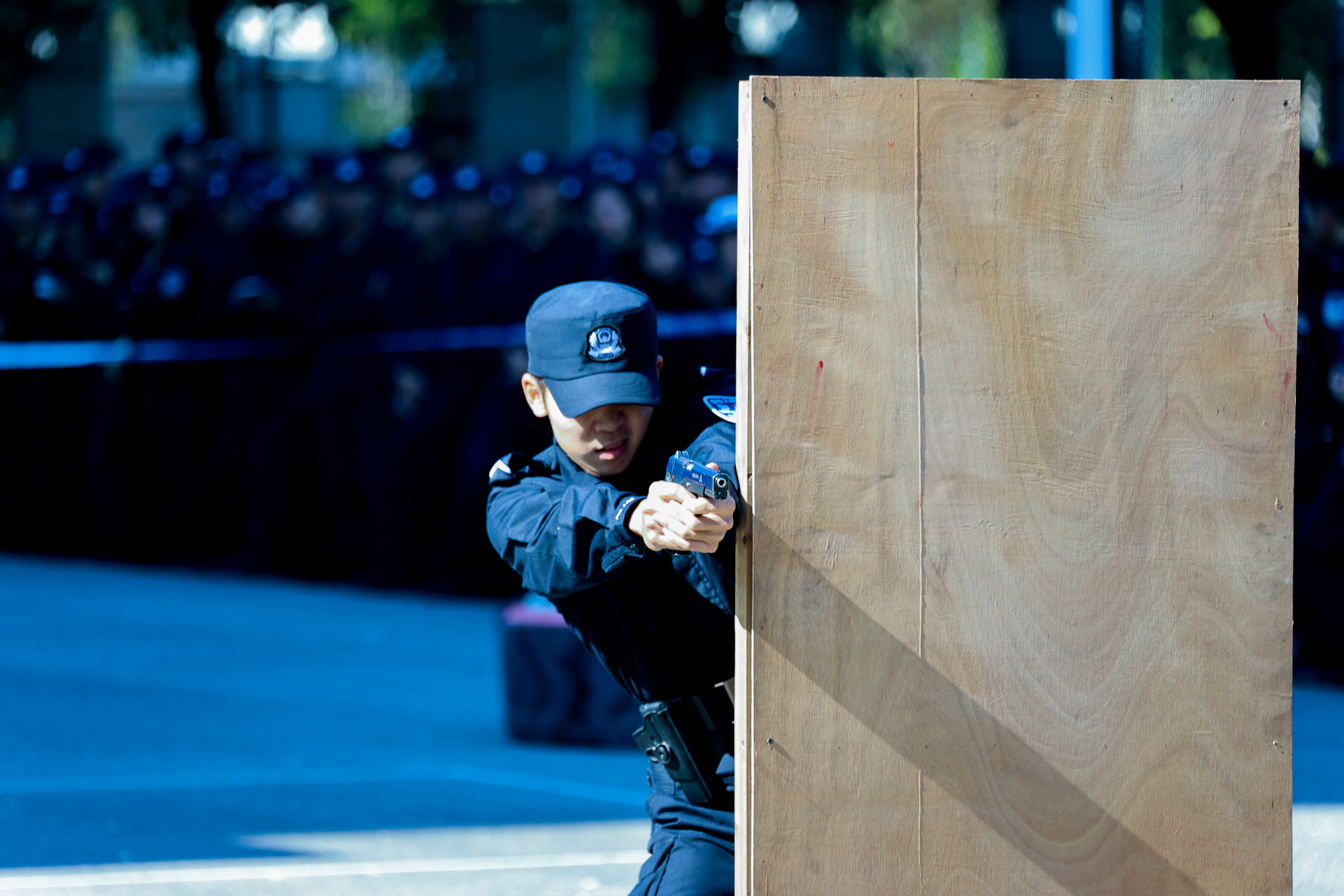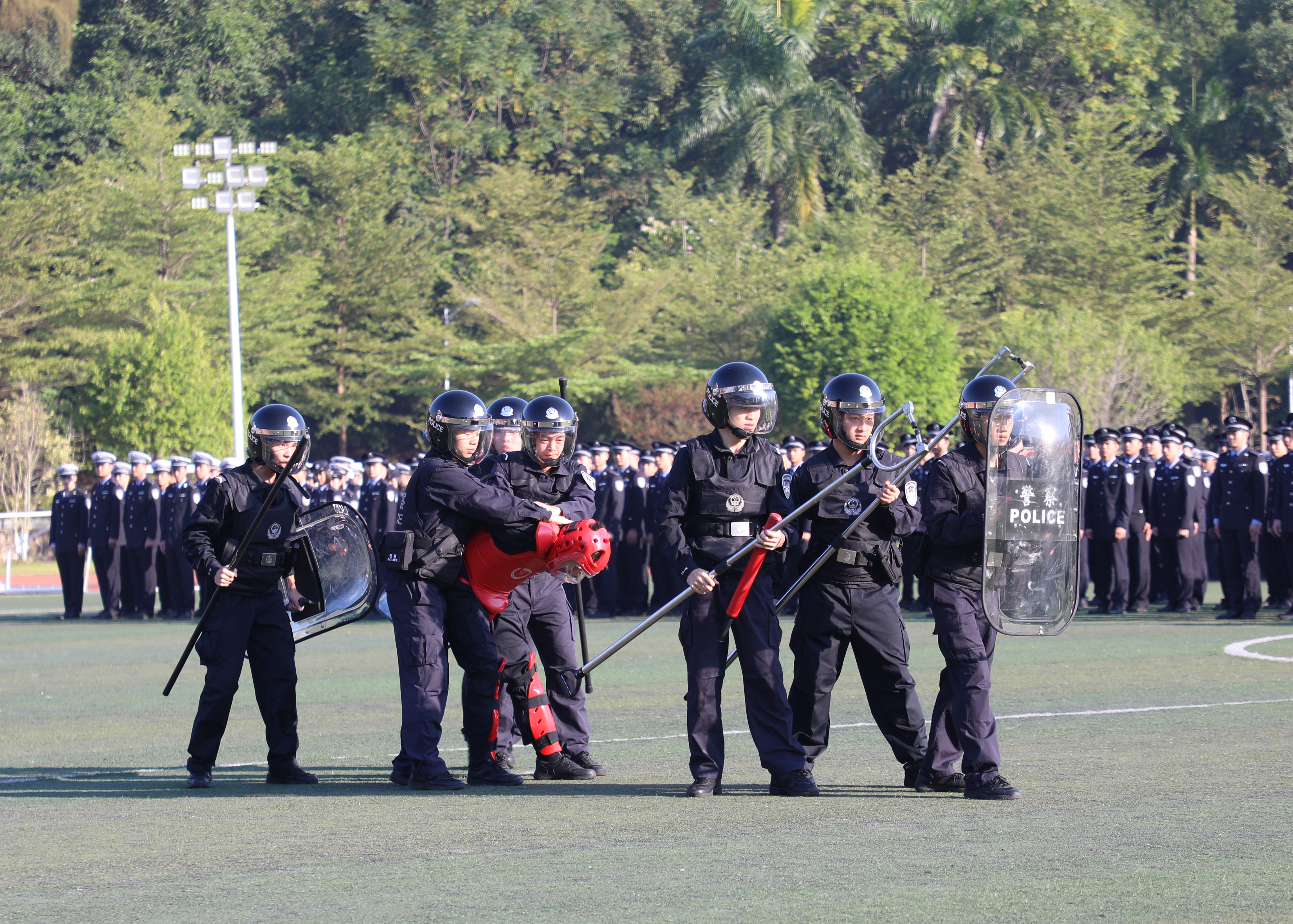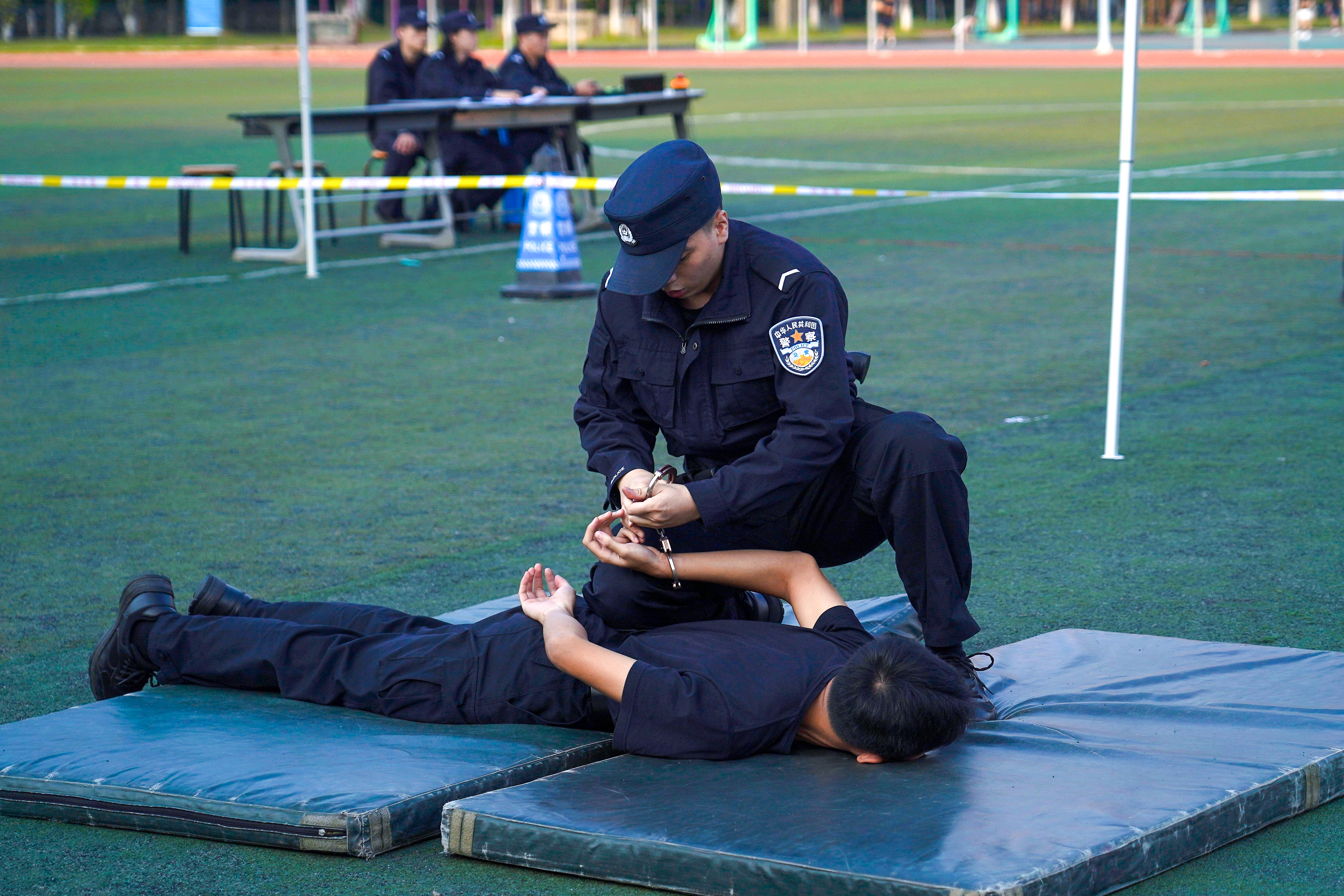 开赛仪式进行了徒手防卫控制技术、警械使用技术、战术基础动作、模拟警情综合演练等4个项目警务实战技能展示,同学们眼神坚定如炬、动作刚劲有力,每一环节均彰显日常训练的扎实功底与实战应用的快速反应能力。