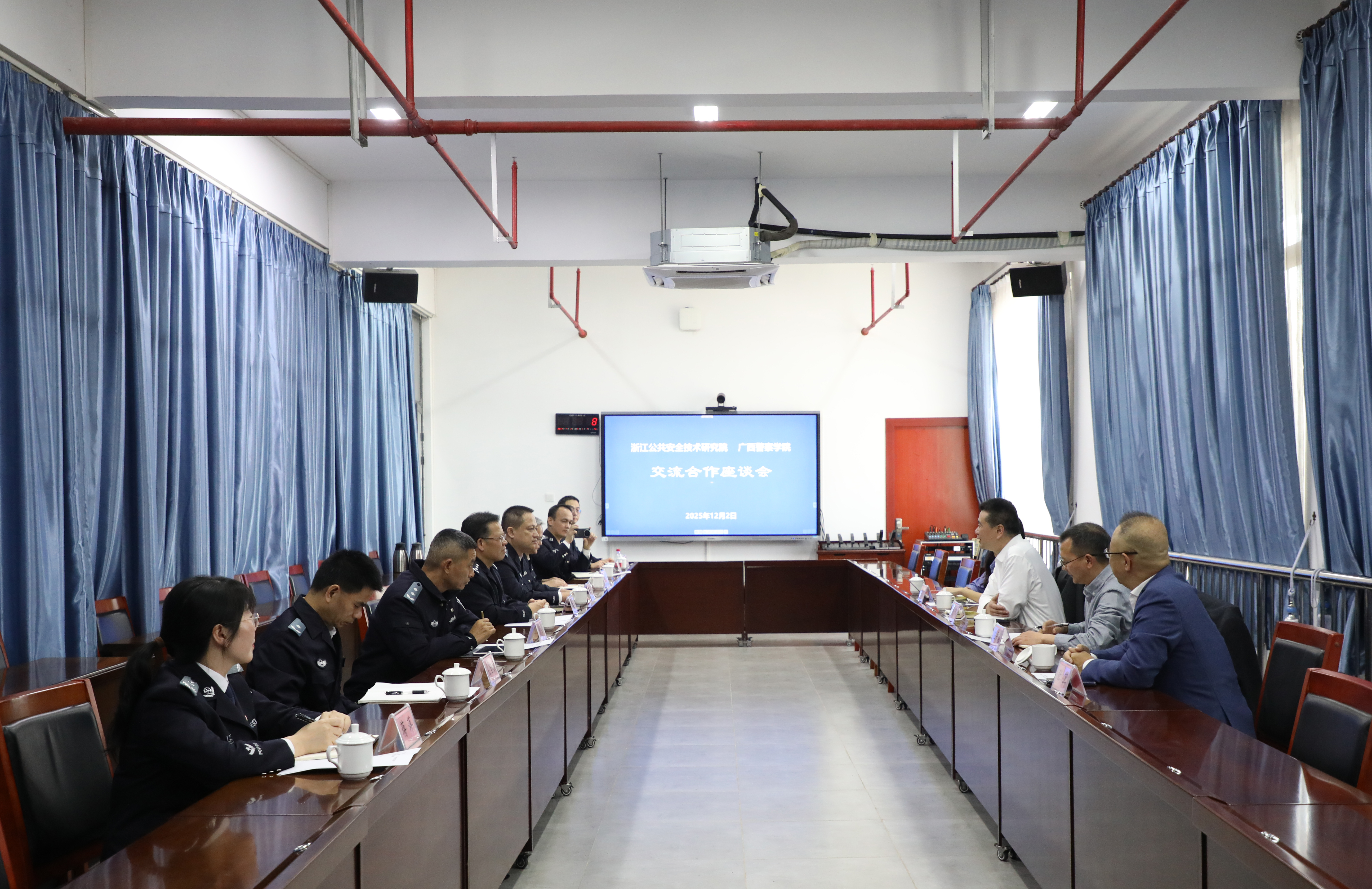彭顺克代表学校向陈港院长一行的来访表示热烈欢迎。彭顺克表示,浙江公共安全技术研究院在警务人工智能技术领域成果丰硕,此次共建人工智能与公共安全技术实验室,是基于区位功能、学科积淀与技术优势的深度融合。彭顺克对双方以共建实验室为平台,持续深化合作提出三点希望:一是强化研发攻关,推动实战急需技术转化。形成可落地、可迭代、可推广的“技术—场景—机制”闭环解决方案,切实提升边境地区与基层一线实战效能。二是健全培养体系,筑牢警务科技人才根基。合作开展师资交流与培训,联合建设实训平台与案例资源库,系统培养懂技术、通业务、具备实践能力和专业视野的警务科技人才。三是统筹开放安全,积极构建合作生态。依托中国—东盟警务合作机制,推动建设面向东盟的公共安全技术交流与培训平台,促进成熟技术成果的转化与应用合作。