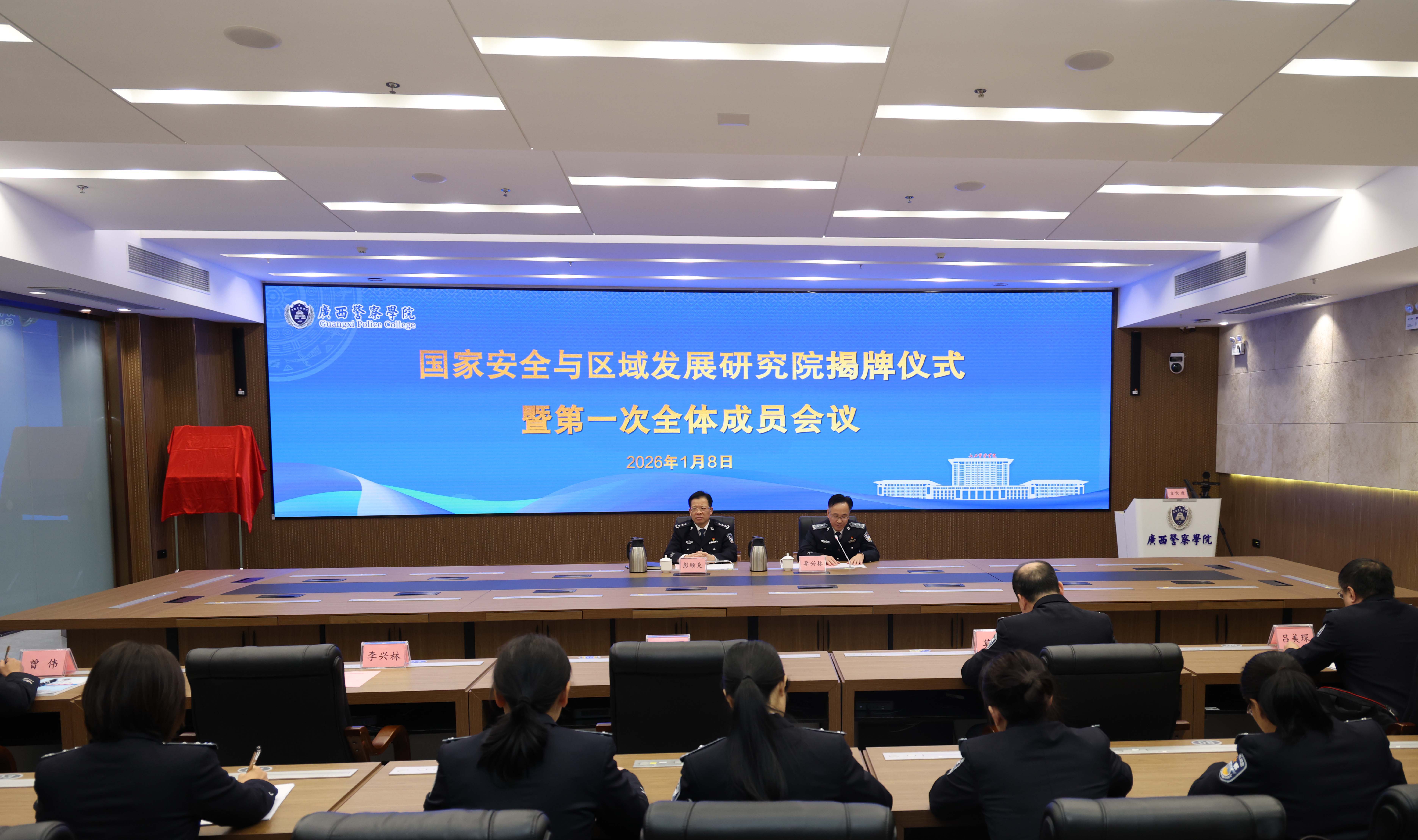 1月8日,学校在仙葫校区智慧研训基地召开国家安全与区域发展研究院揭牌仪式暨第一次全体成员会议。学校党委书记、国家安全与区域发展研究院院长彭顺克出席会议并作报告,副校长李兴林主持会议。