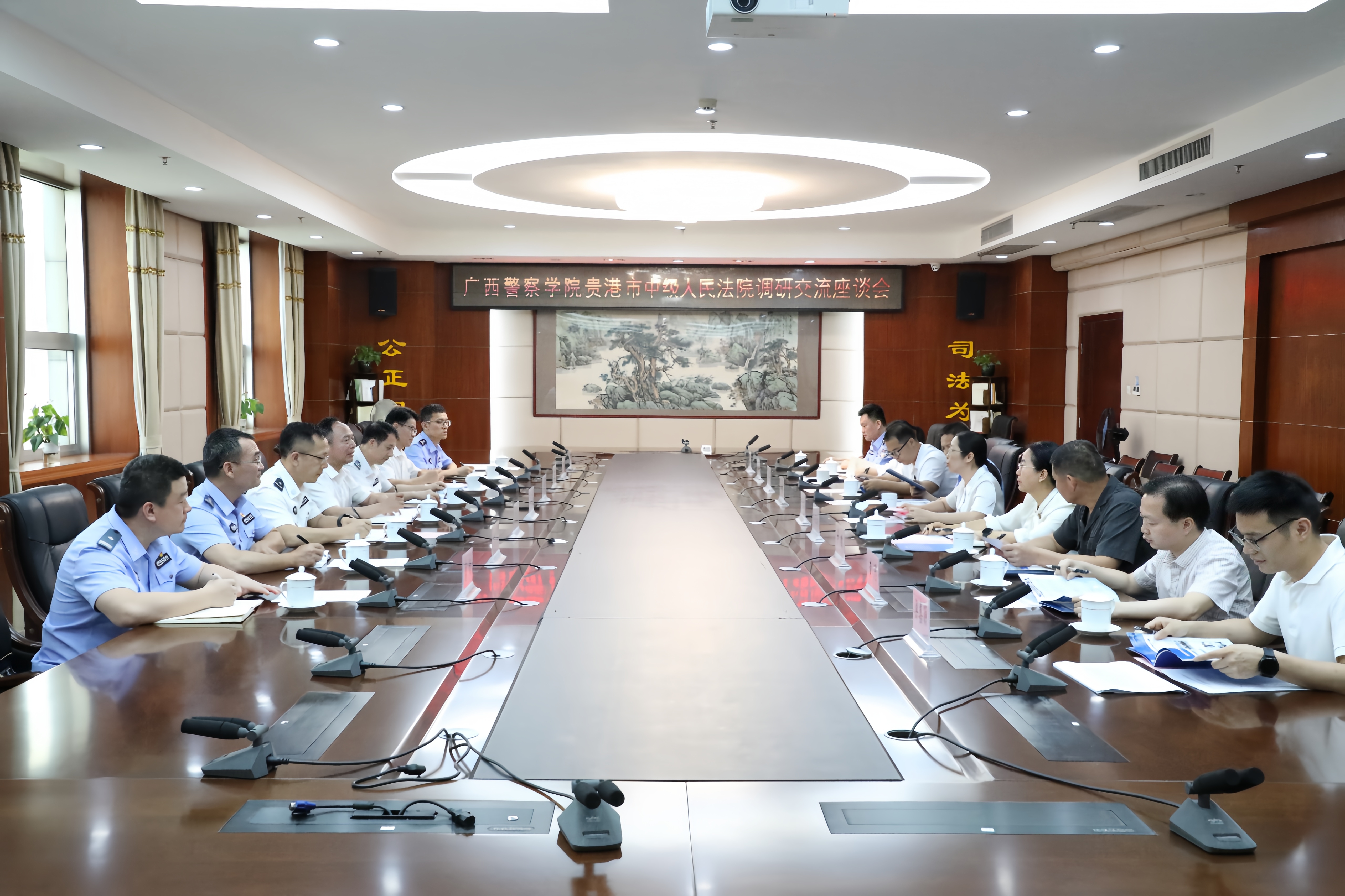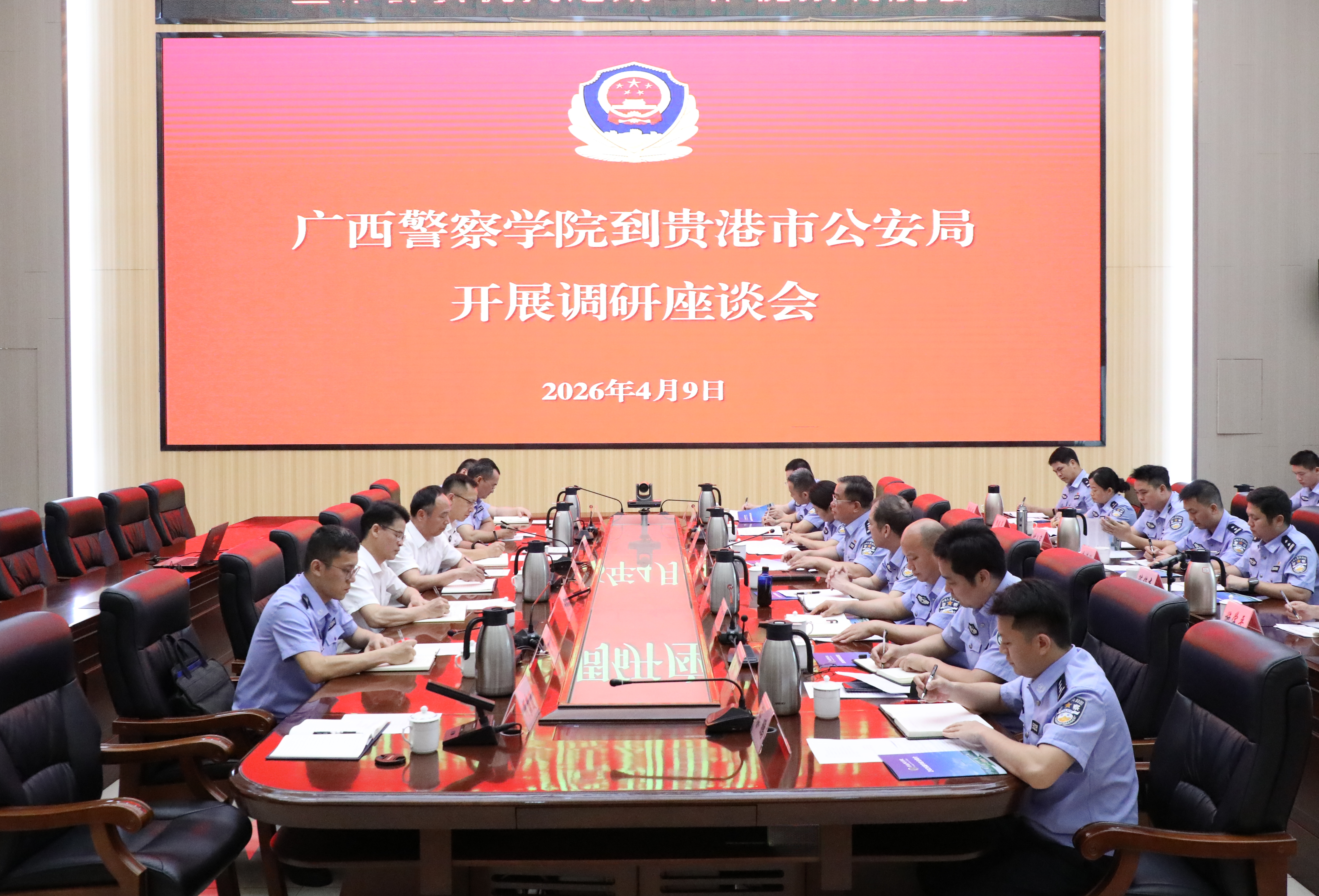 在贵港市公安局,双方开展调研座谈。何立荣对贵港市公安局长期以来给予学校的大力支持和对毕业生的悉心培养表示感谢,并介绍了学校建设发展情况。他表示,希望今后校局双方在毕业生实习课程设置、科研课题合作、教学培(实)训双向输出、警务人才培养模式等方面开展更进一步的交流合作。贵港市公安局党委委员、政治部主任韦振峰介绍了TapTap毕业生在贵港市公安局的履职、立功受奖及成长发展情况,充分肯定TapTap毕业生为贵港公安工作作出的积极贡献,并结合基层公安用人需求,对TapTap预备警官队伍培养工作提出了针对性意见建议。座谈会上,调研组听取了毕业生代表和实习生代表的工作汇报,详细了解他们的岗位适应情况和成长感悟。