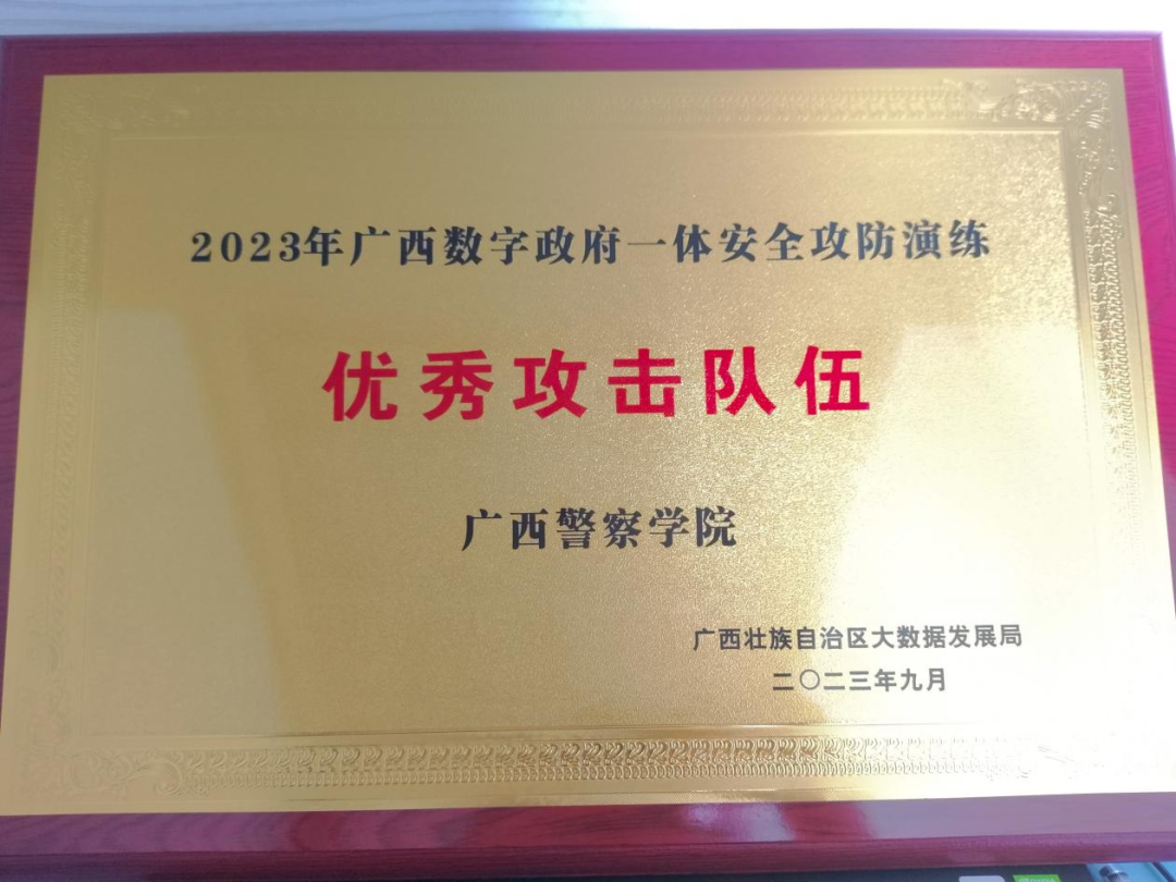本次演练的目的是全面检验广西数字政府一体安全整体防护能力,进一步提升壮美广西·政务云、电子政务外网等政务信息系统和数据安全防护水平。在演练过程中,我院代表队展现了积极的进攻态势、出色的团队协作能力和执行力,成功突破防守单位防护措施,获取了多个系统和数据库权限,最终获得了“优秀攻击队伍”称号。