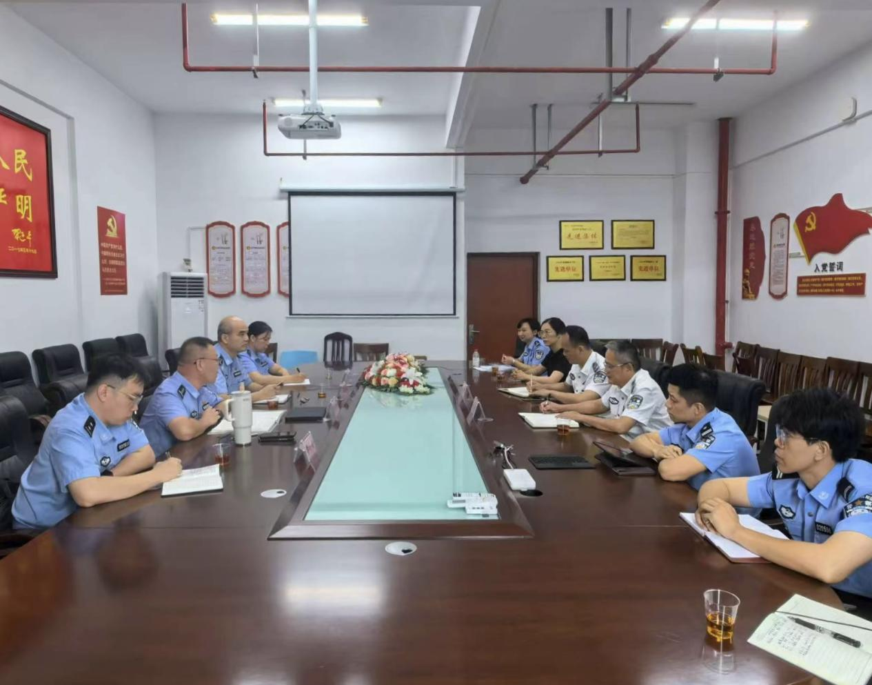 座谈中,双方首先对广西公安系统第二届职业技能竞赛筹备工作展开交流研讨。针对大赛筹备阶段的重点难点问题,对比赛场地布置、专业设备调试与应急保障方案、全后勤服务衔接细节、参赛人员食宿安排等事宜逐一梳理,明确了各环节的负责部门与时间节点,共同拟定下一步工作推进计划,为竞赛平稳有序开展筑牢基础。