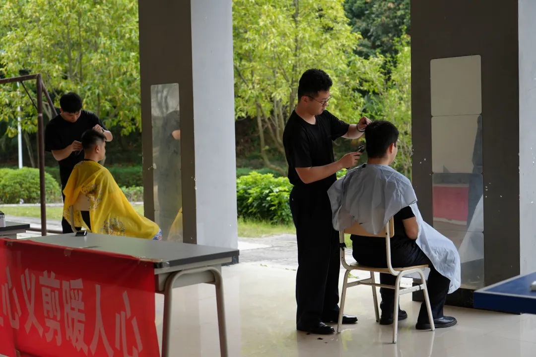 在本次学雷锋主题活动中,由学院招募的理发志愿者提供服务,现场按序参与,参与活动的学生提前与理发师沟通好发型需求,理发师们手法娴熟,耐心细致,根据每个人的脸型和警容要求,精心修剪,剪刀咔嚓作响,留下了桂警院学子最清爽、最精神的精神面貌。