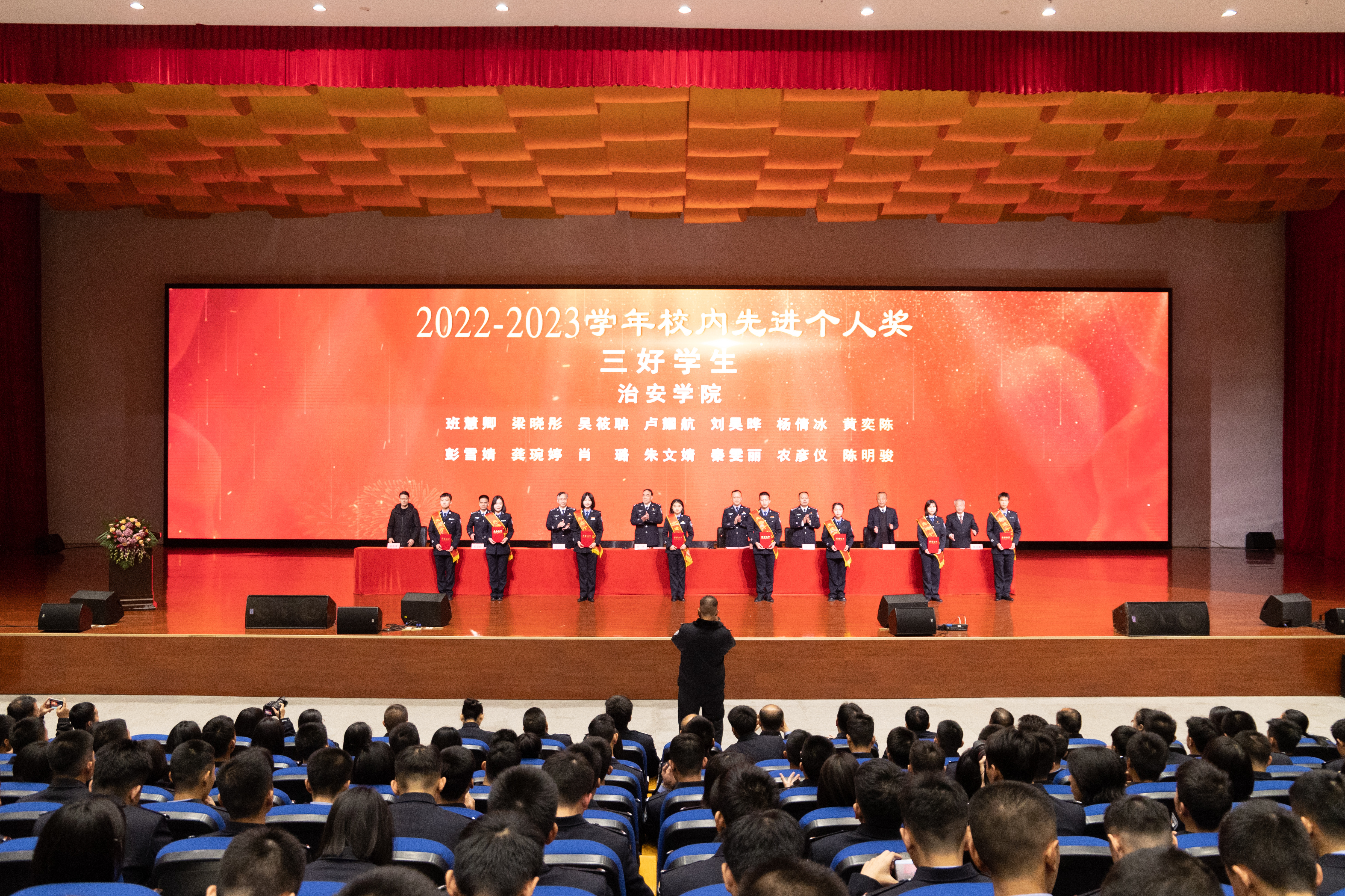 大会表彰了荣获第20届中国—东盟博览会、中国—东盟商务与投资峰会安保工作先进集体和先进个人,颁发了“先进班集体”“优良学风班集体”“优良学风宿舍”“三好学生”“三好学生标兵”“优秀学生干部”、国家励志奖学金、自治区人民政府奖学金、校长奖学金和国家奖学金荣誉证书。