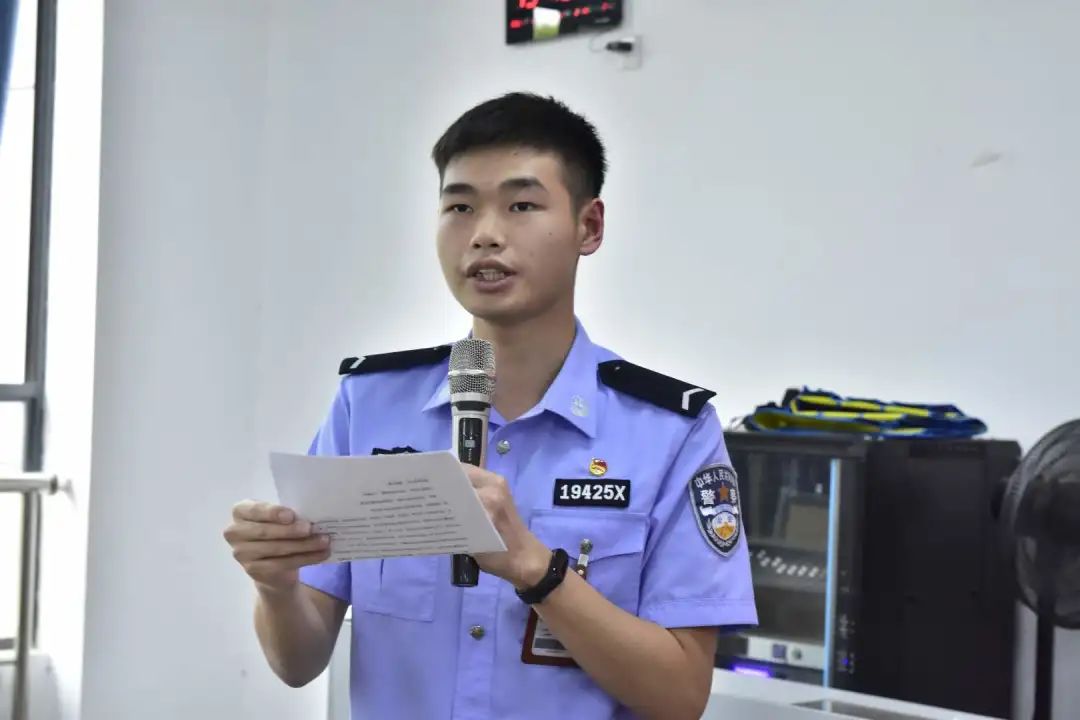 紧接着,2019级公安学九区覃靖同学作为学生代表进行表态发言。他倡议同学们要坚定理想信念,坚持党的领导,希望各位团干部积极做我院团员青年的领学人、促学人,积极推动我院学习教育活动常态化开展。
