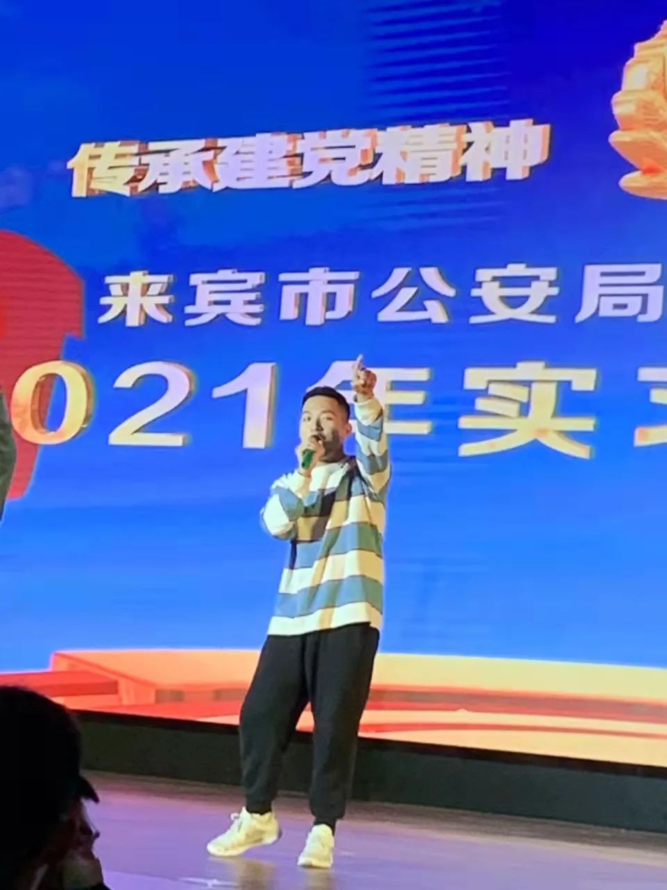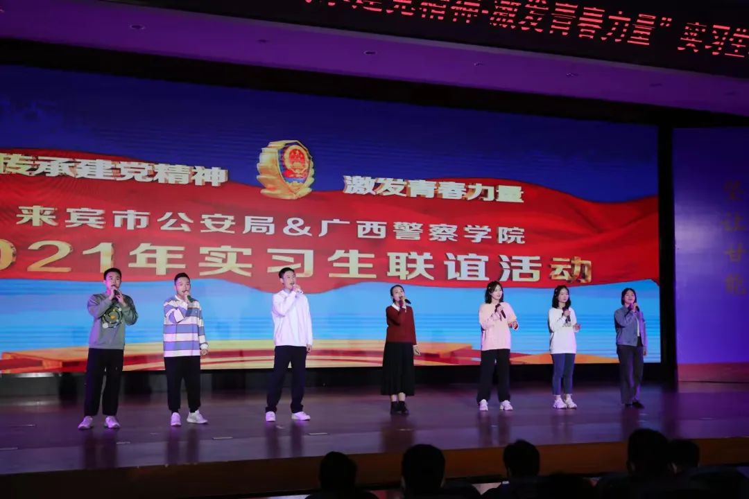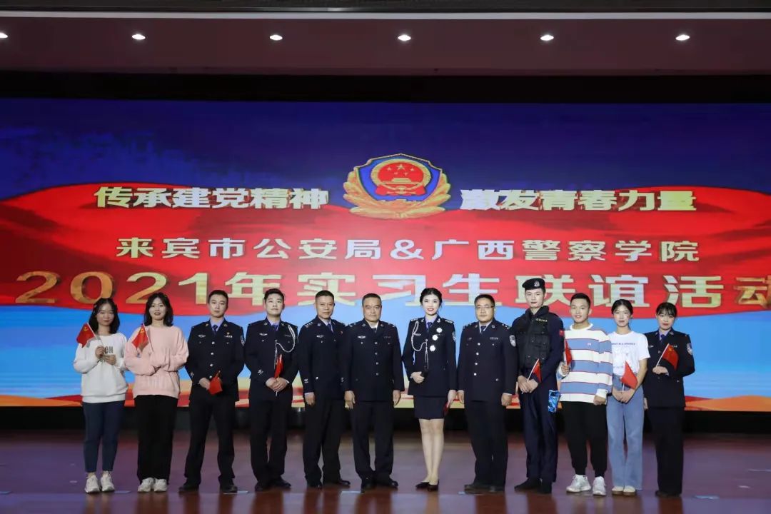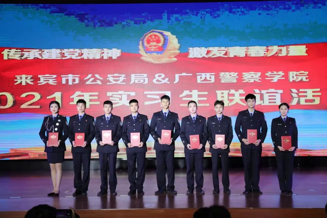 活动在歌曲《强国一代有我在》中落下帷幕。当晚,来宾市公安局党委委员、政治部主任龙刚玉宣读荣获2021年优秀实习生的名单,其中我院实习生雷海、何嘉雯、宋科义等同学荣获优秀实习生奖项,参加活动的领导为获奖实习生颁奖。