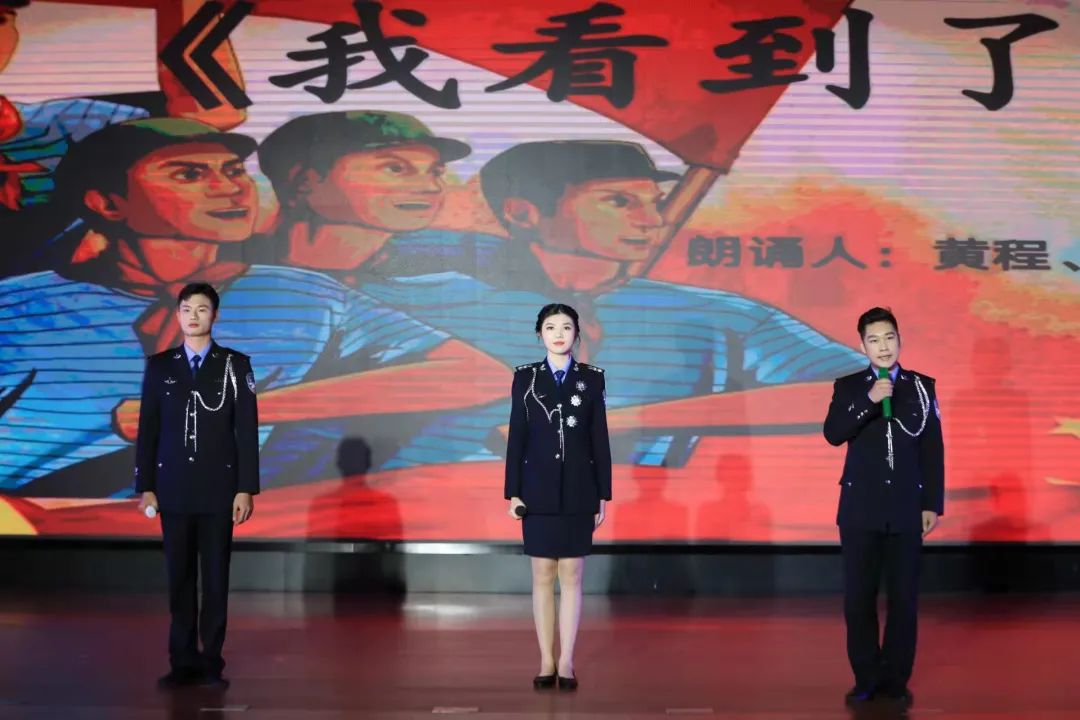我院实习生黄程、何嘉雯、梁晓蔚等三名同学自编自导,自演自颂,给大家带来了朗诵节目《我看到了》。以自身的实习经历为故事蓝本,通过对实习生活中的所见所闻,所学所悟,歌颂了警师们的光辉形象,坚定了同学们从警的决心,让同学们以警师为榜样,努力在未来能够成为一名优秀的人民警察。