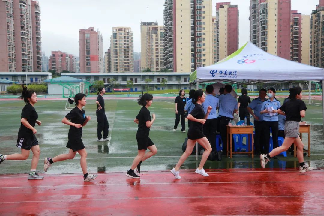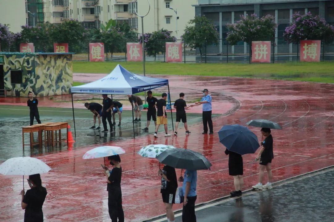 模拟测试期间,治安学院学子不畏滂沱大雨,圆满完成本次体能模拟测试。